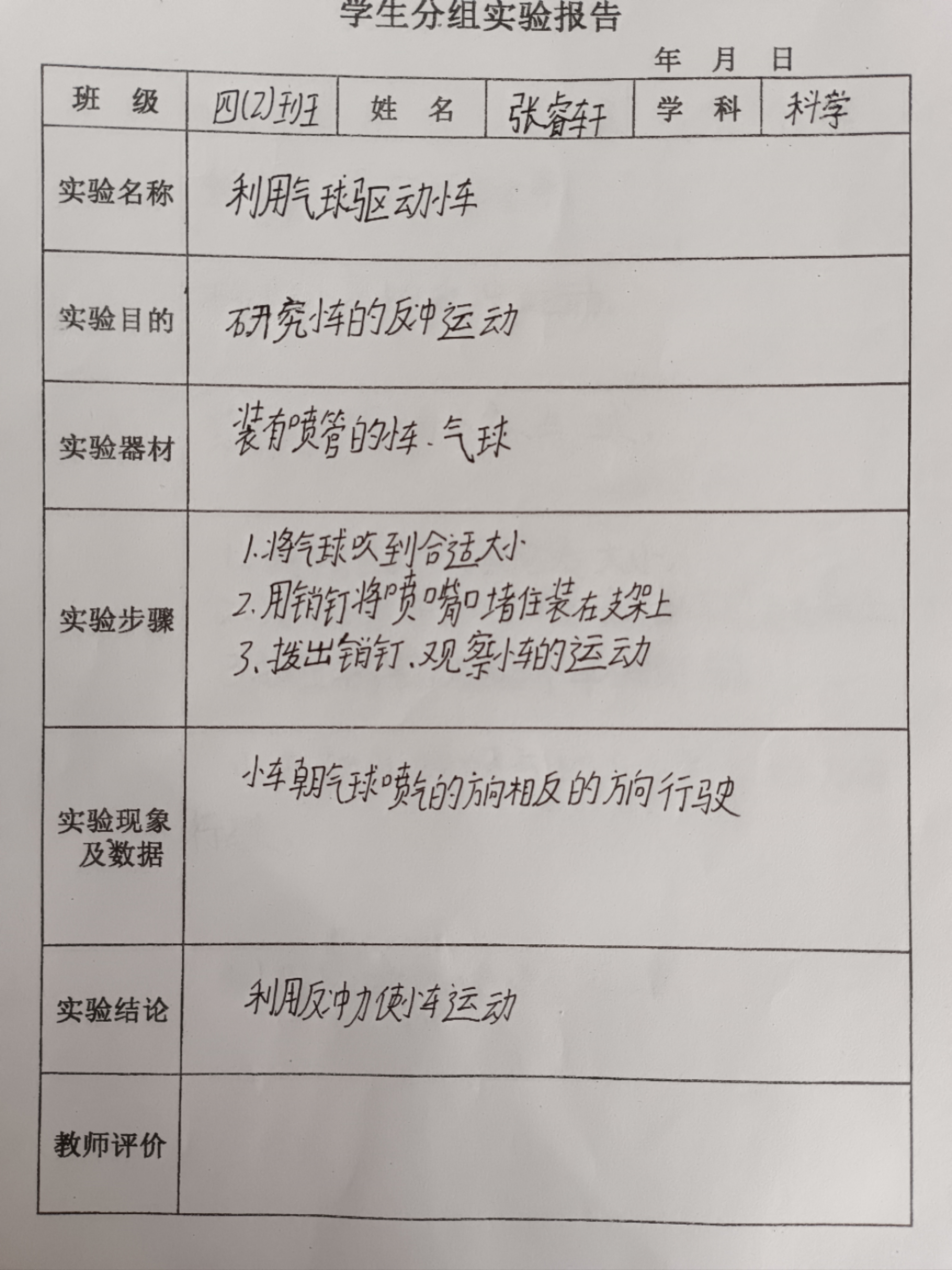 年级科目:四年级科学