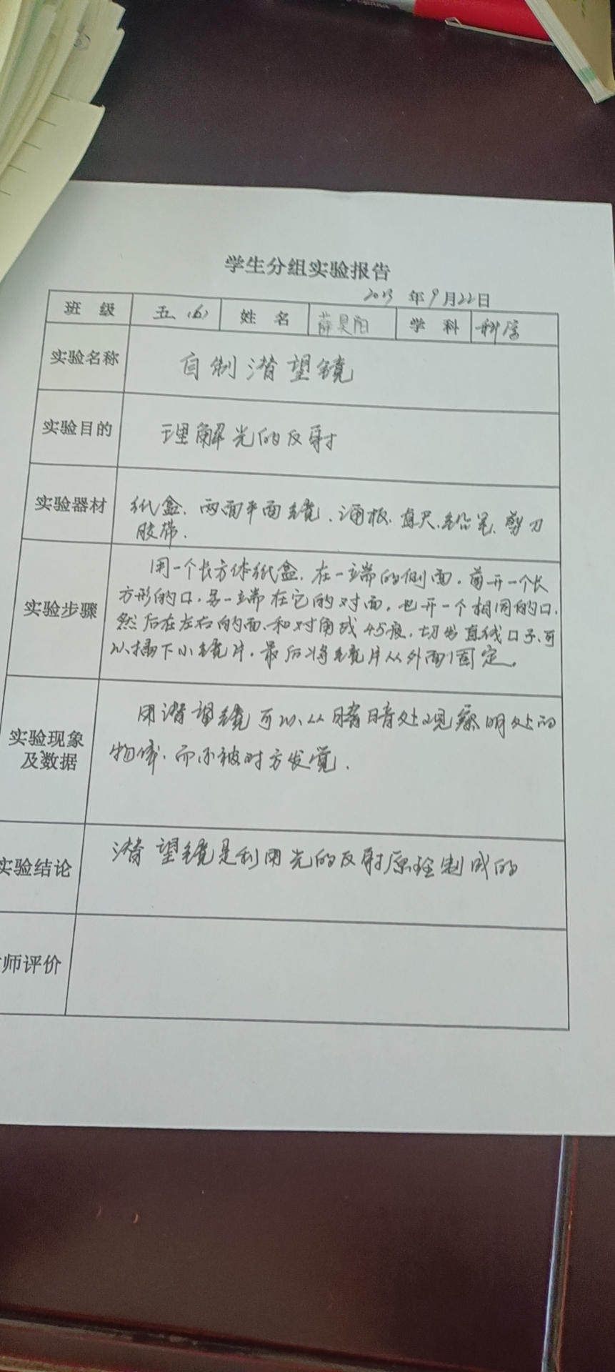 年级科目:五年级科学