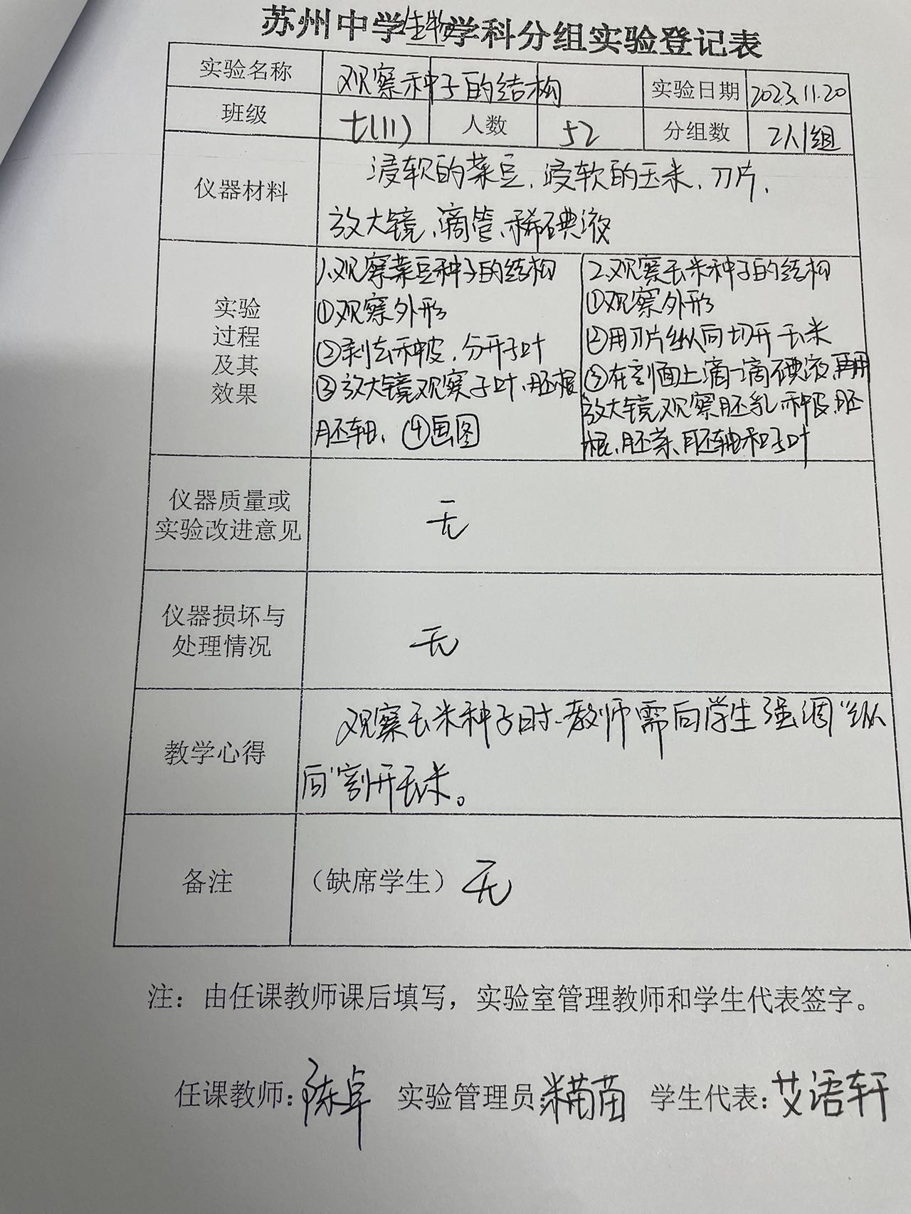 实验登记表