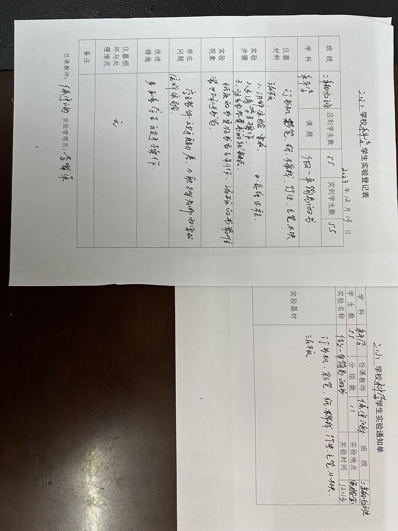 实验登记表