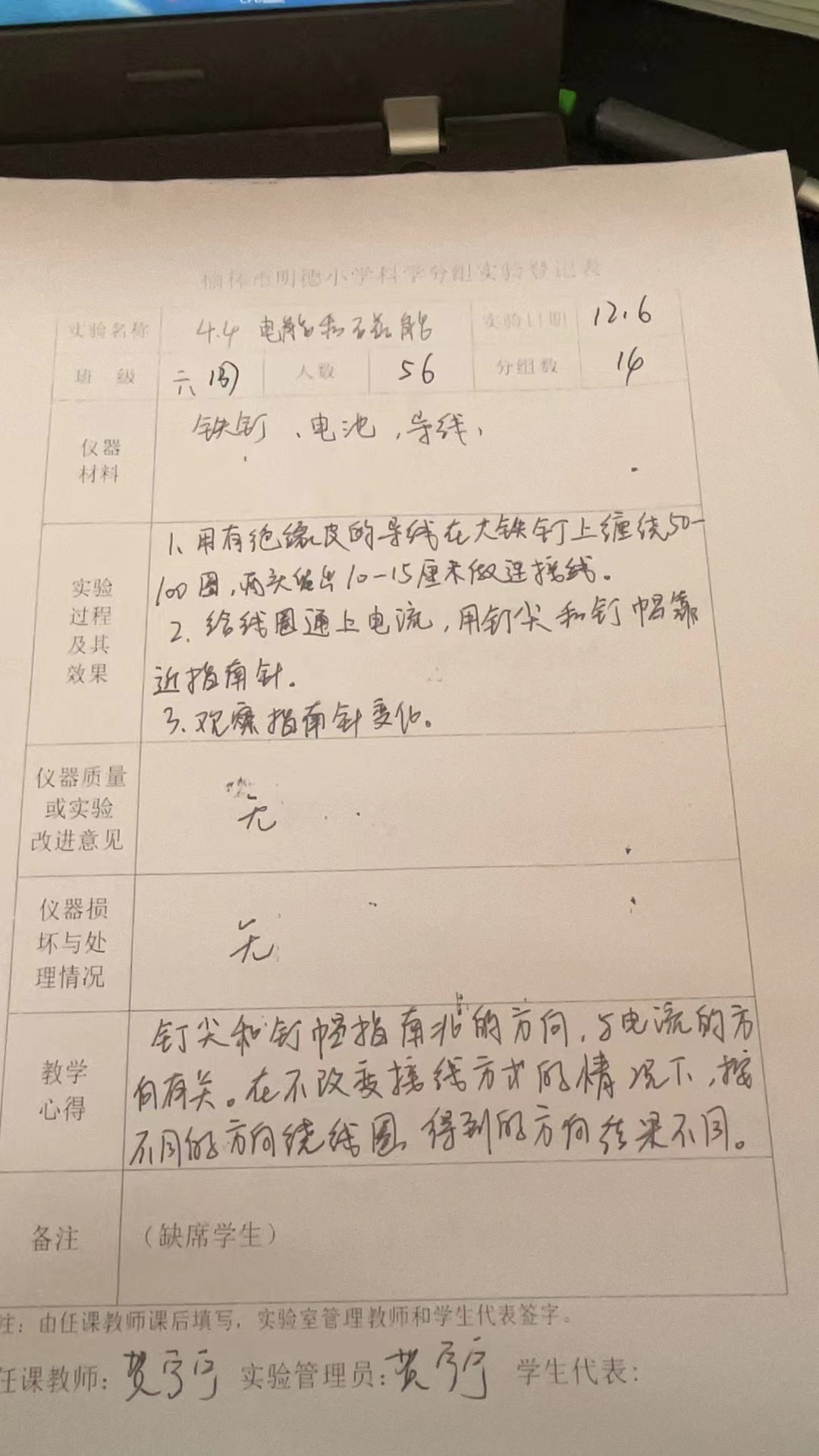 实验教师:马乐志