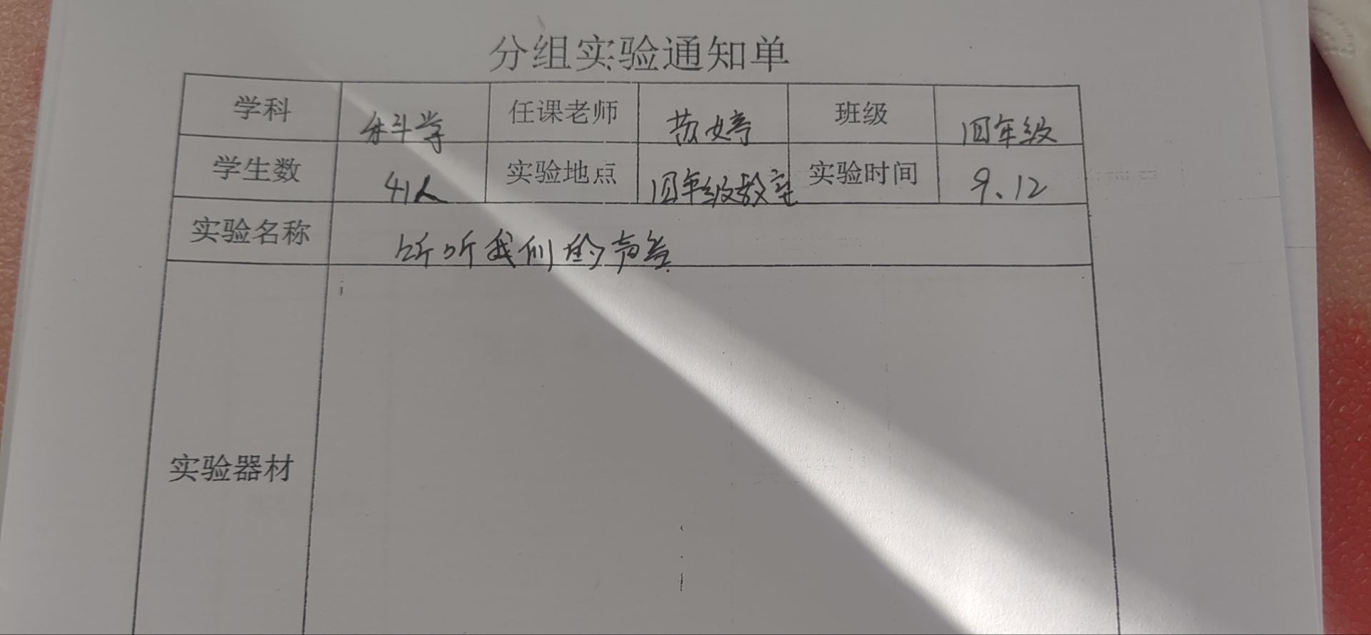 实验登记表
