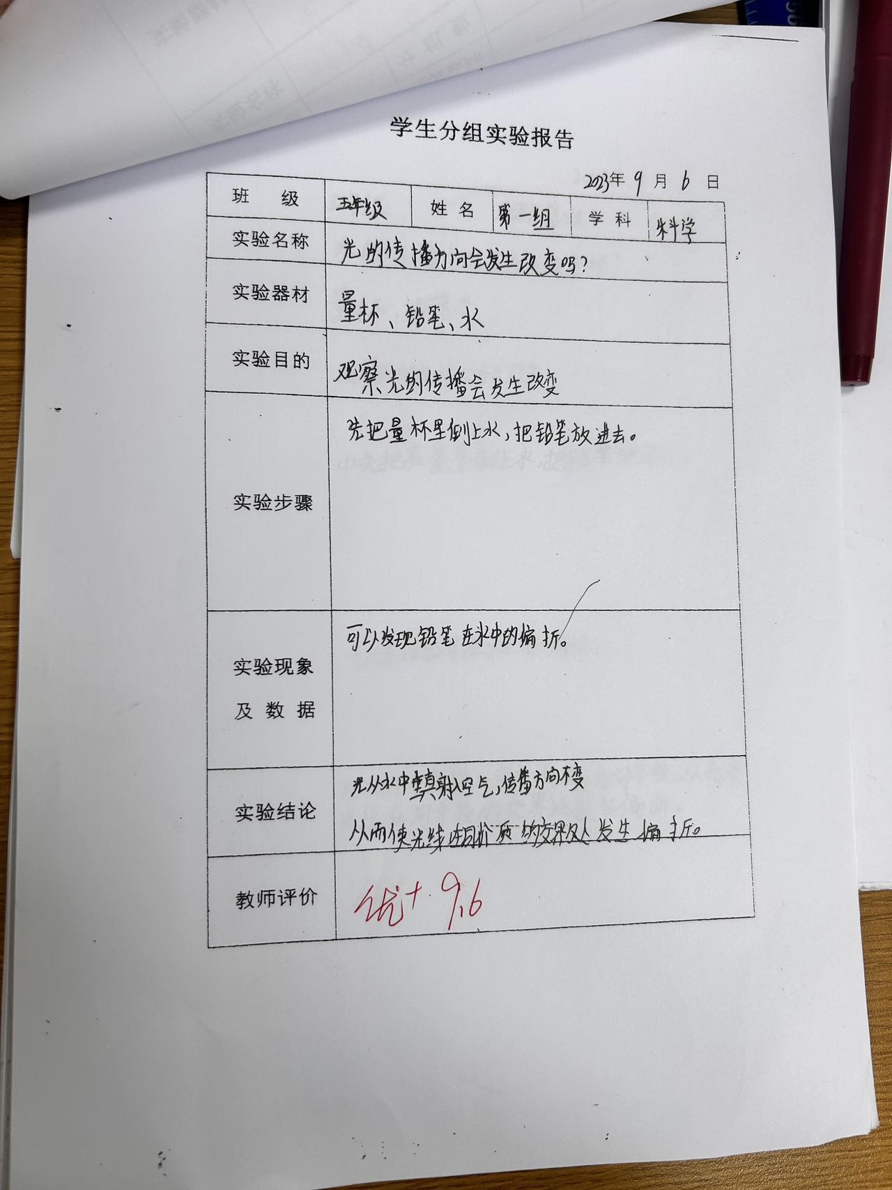 年级科目:五年级科学