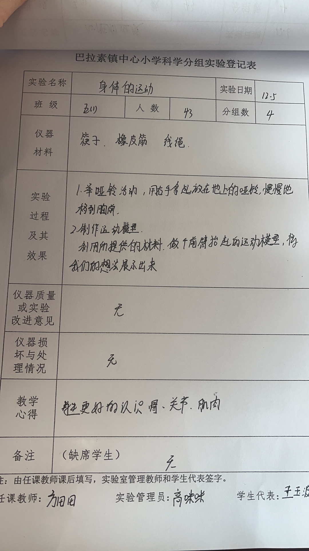 实验登记表