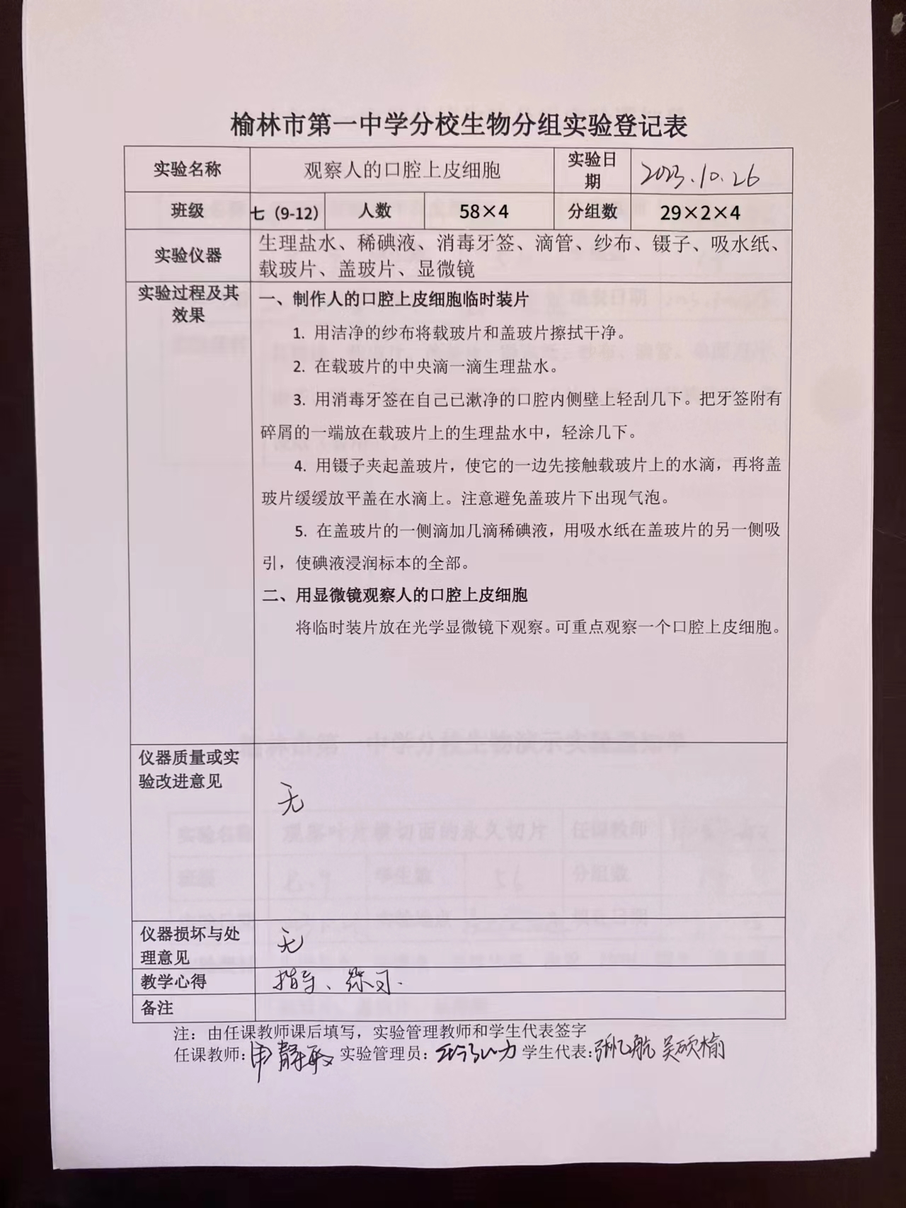 实验登记表