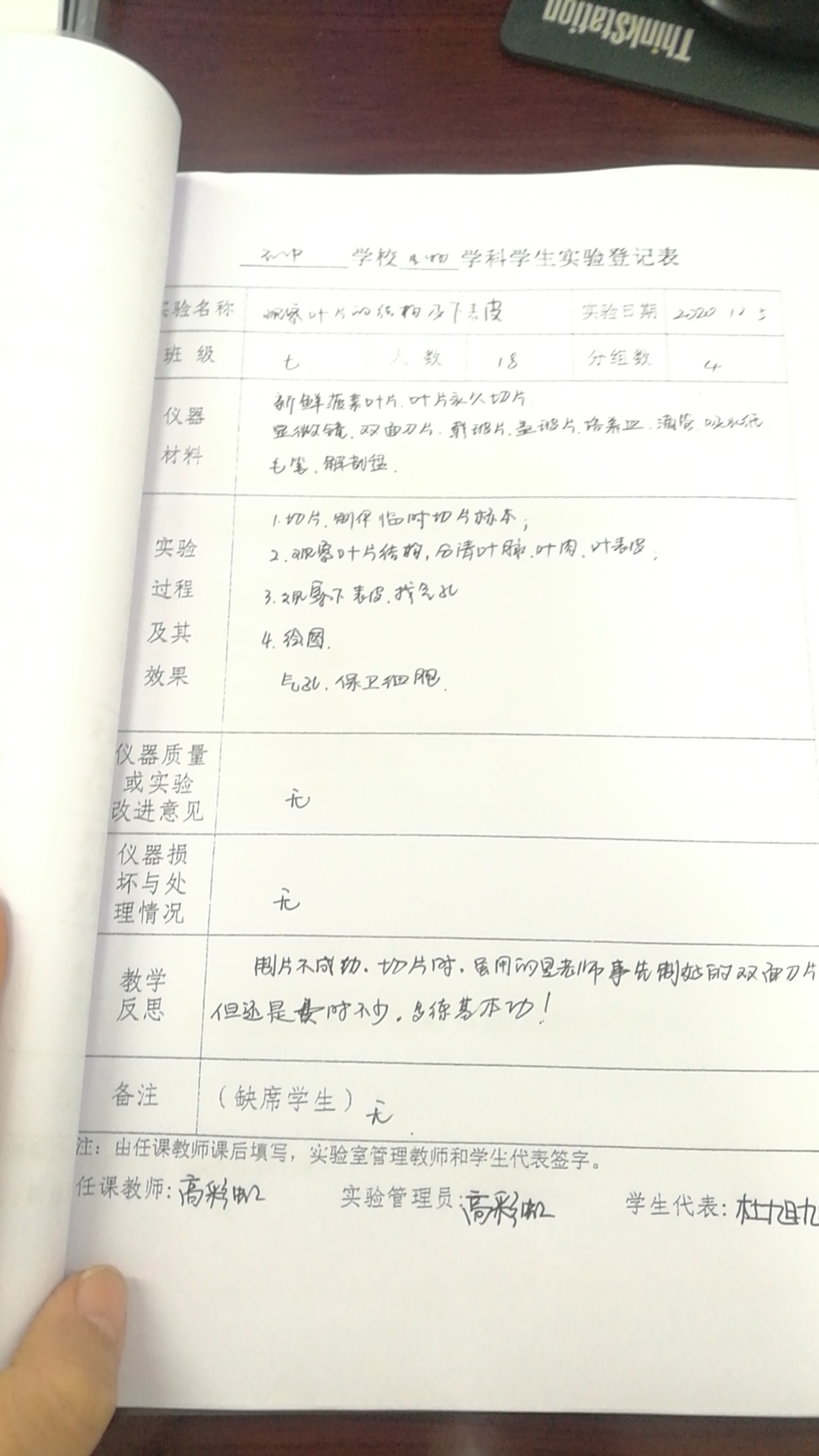 实验登记表
