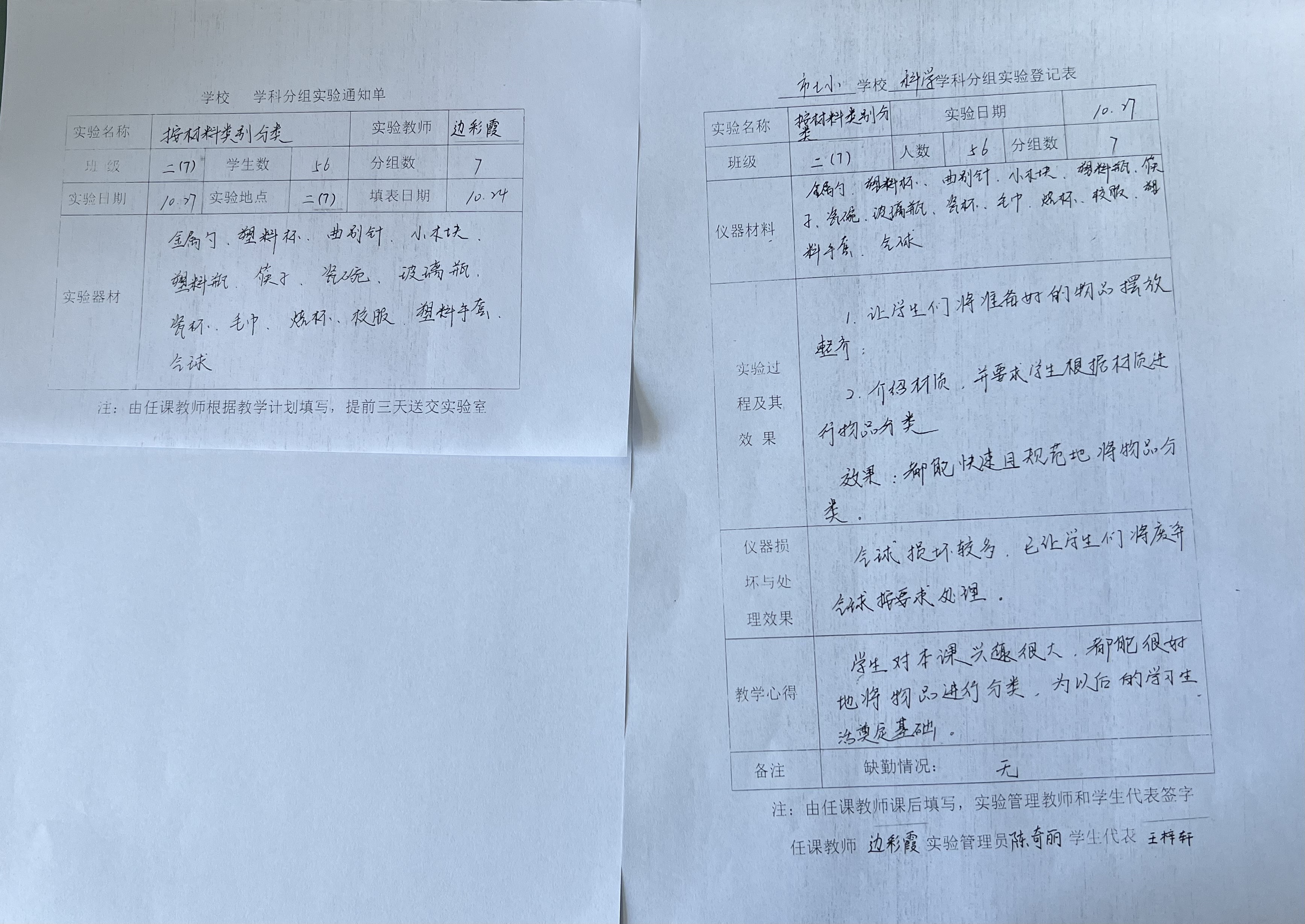 实验登记表