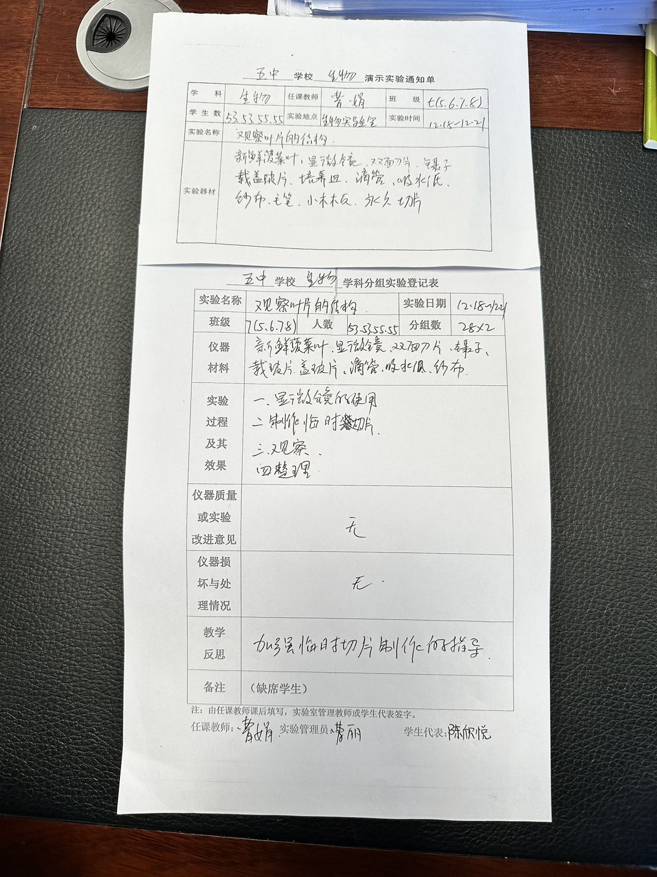 实验登记表
