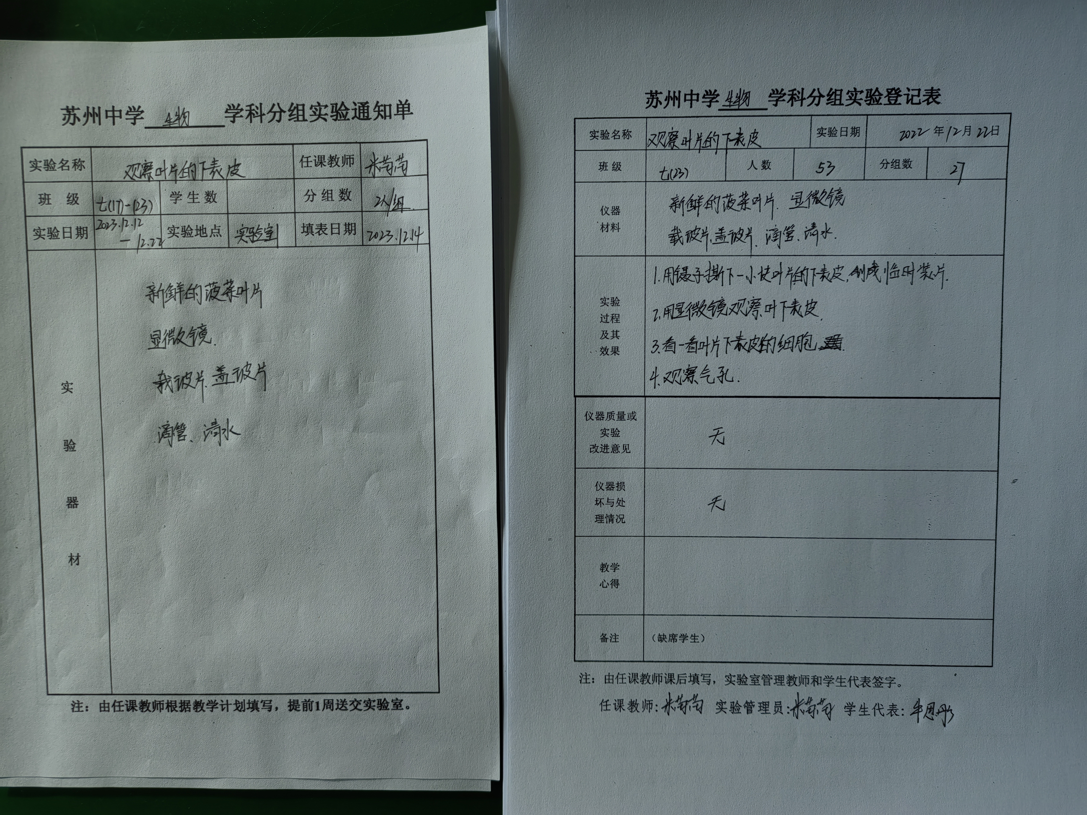 实验登记表