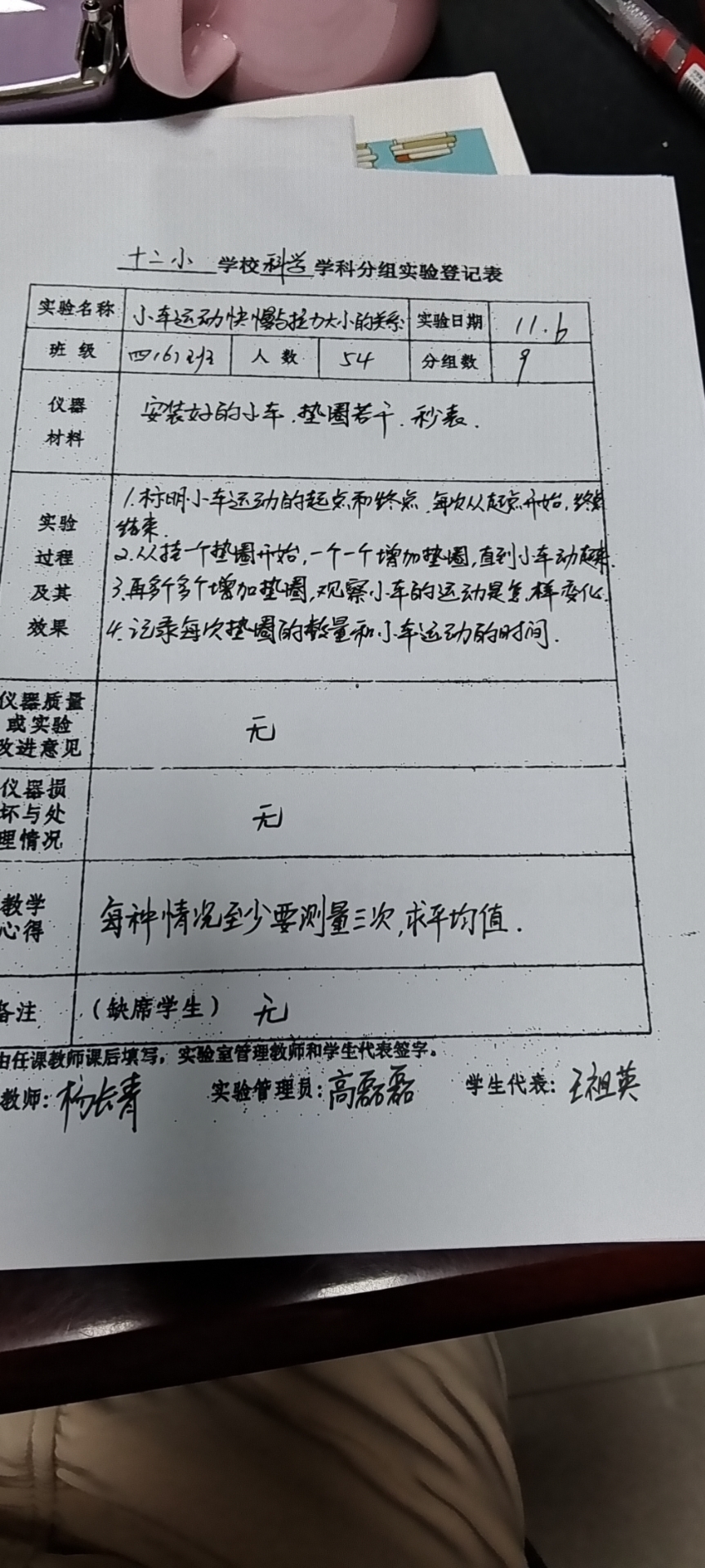 实验登记表
