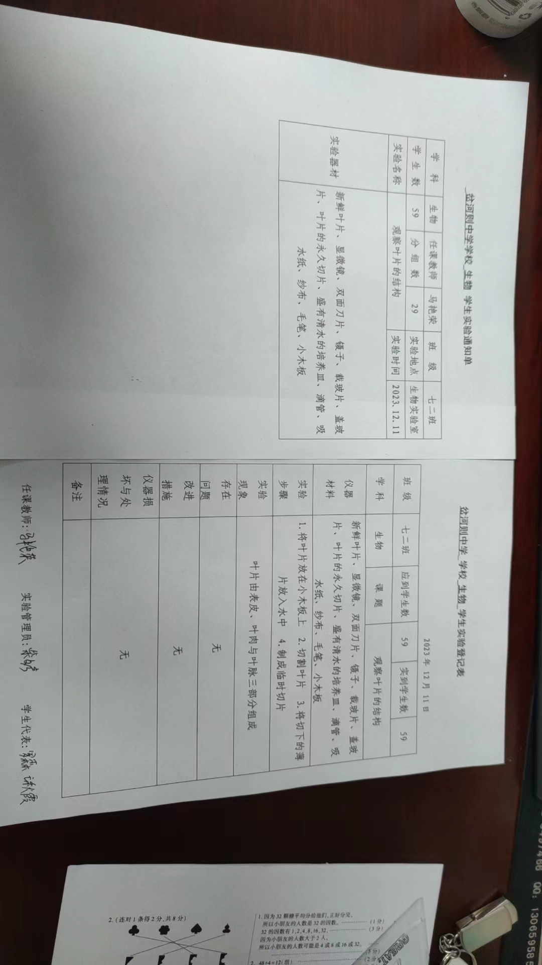 实验登记表