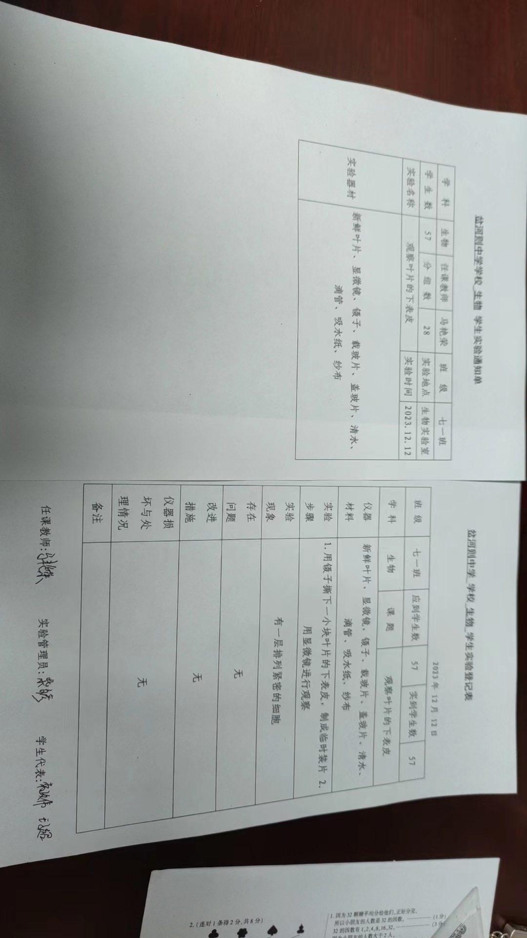 实验登记表
