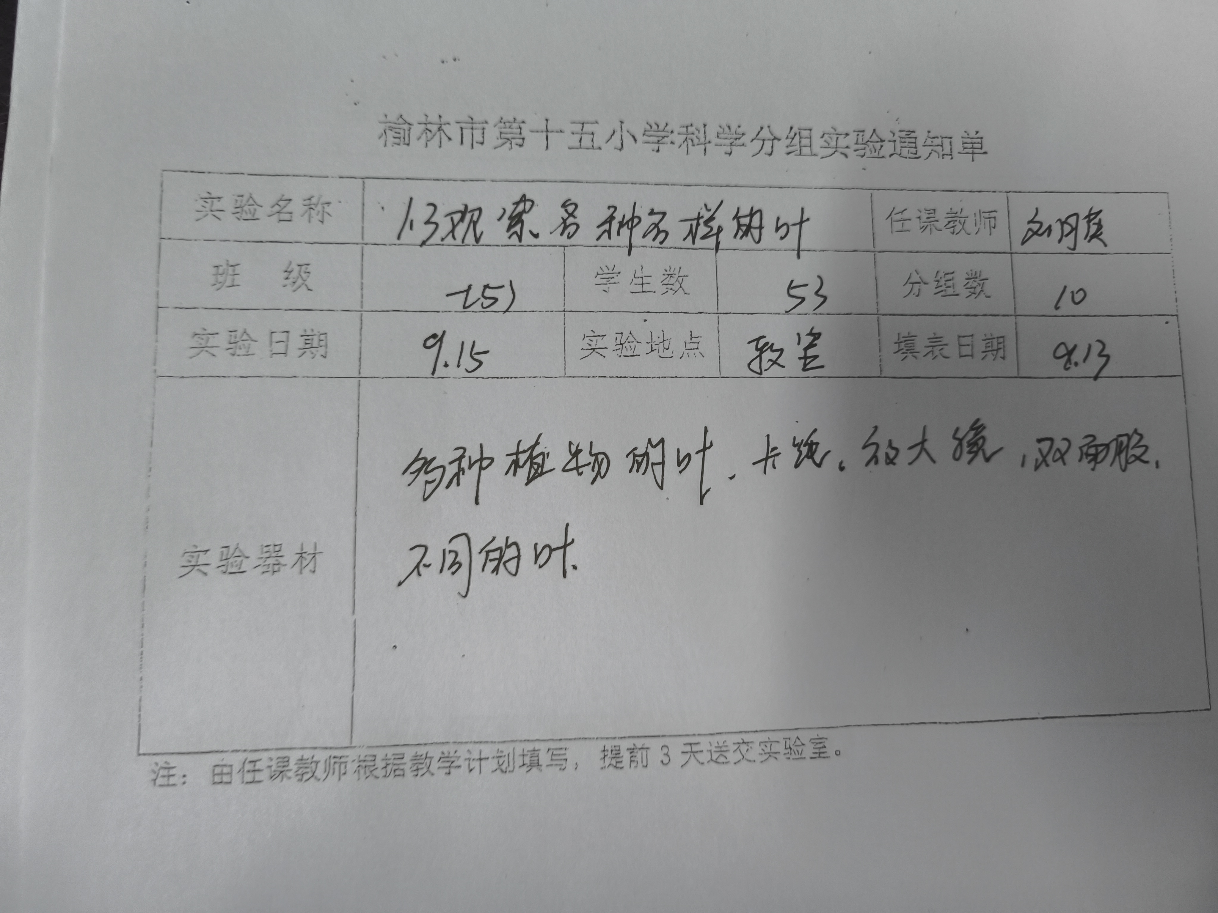 实验登记表