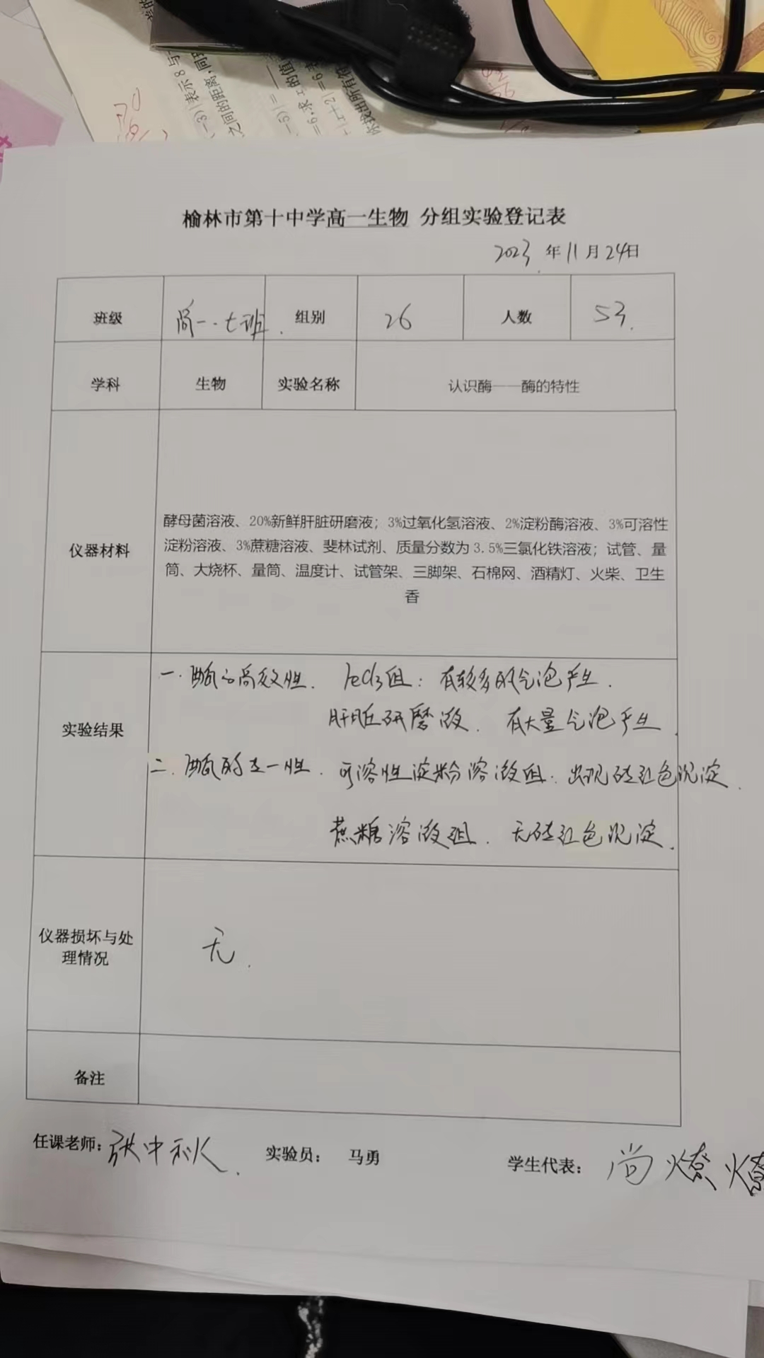 实验登记表
