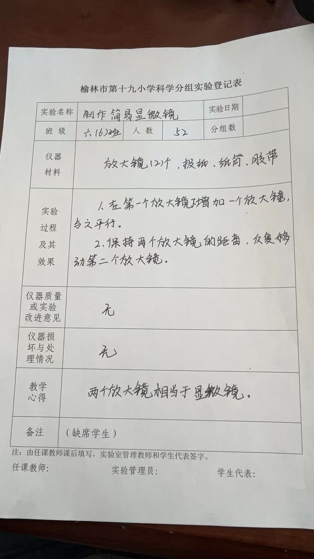 实验登记表