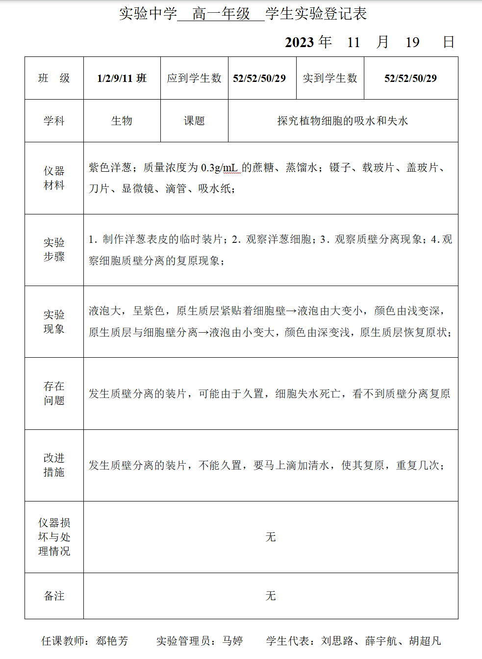 实验登记表