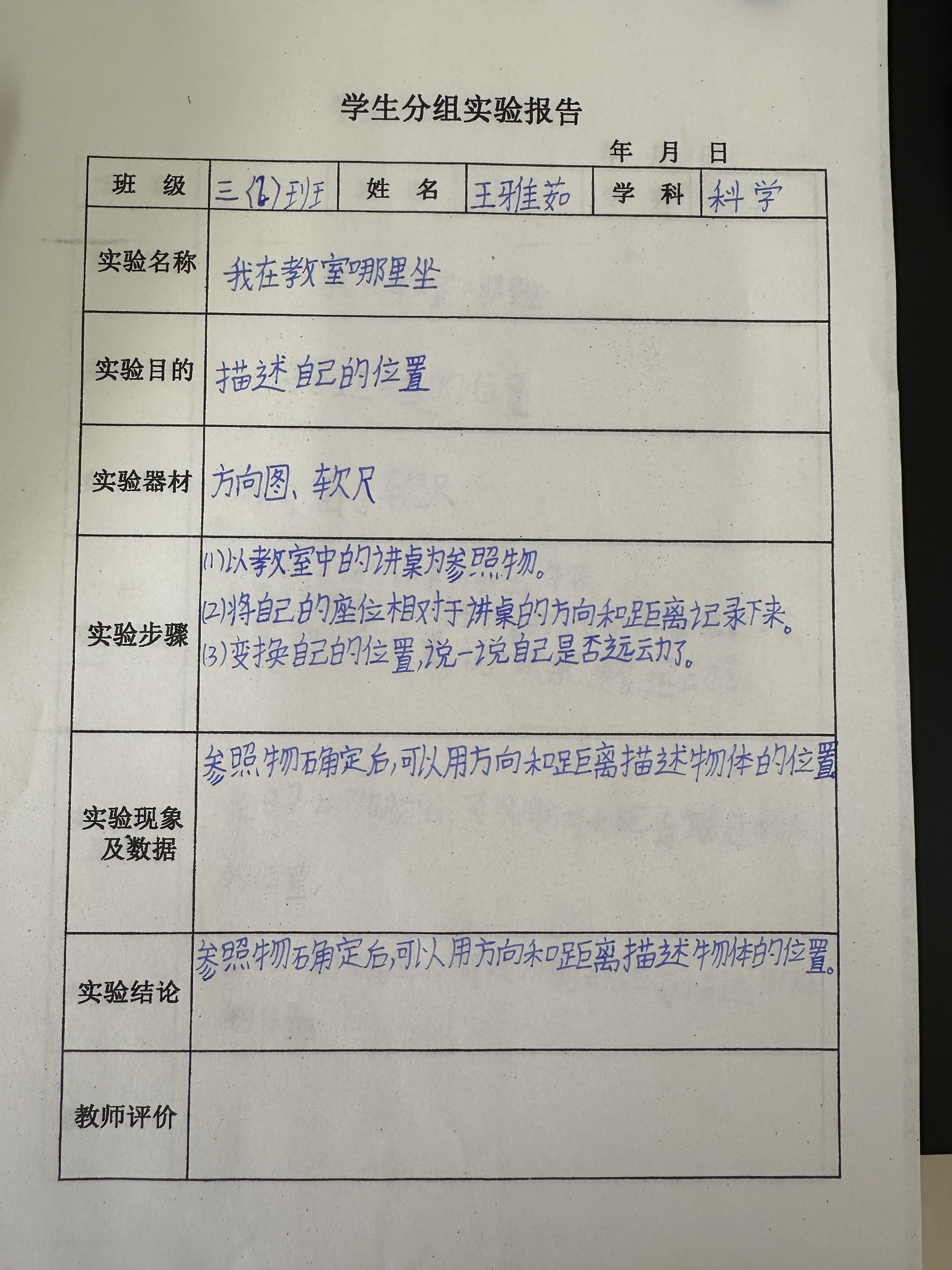 年级科目:三年级科学