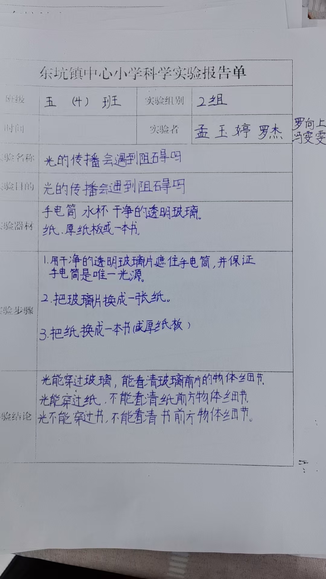 年级科目:五年级科学