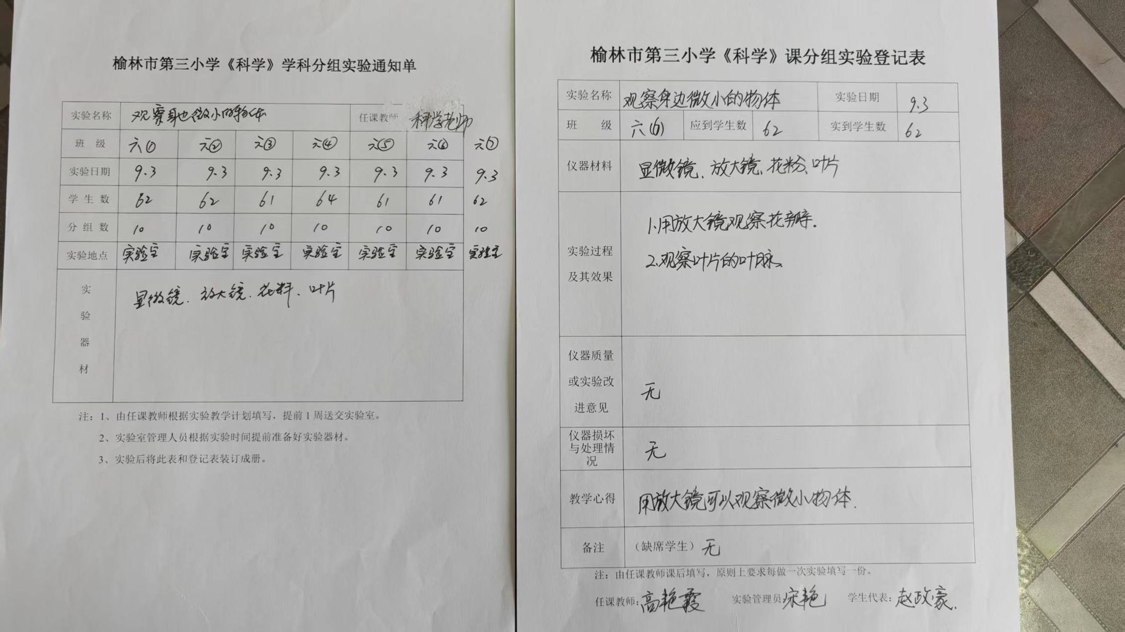 实验登记表