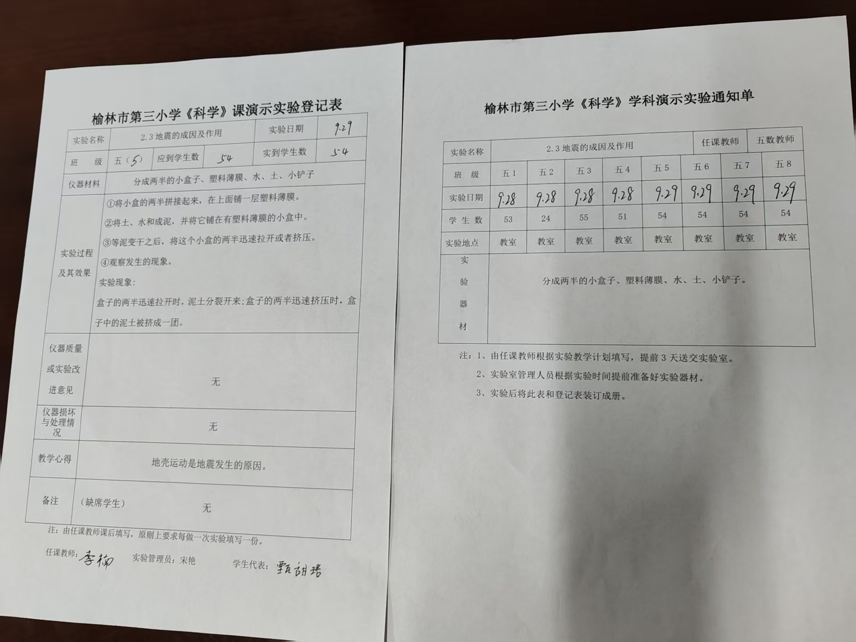 实验登记表