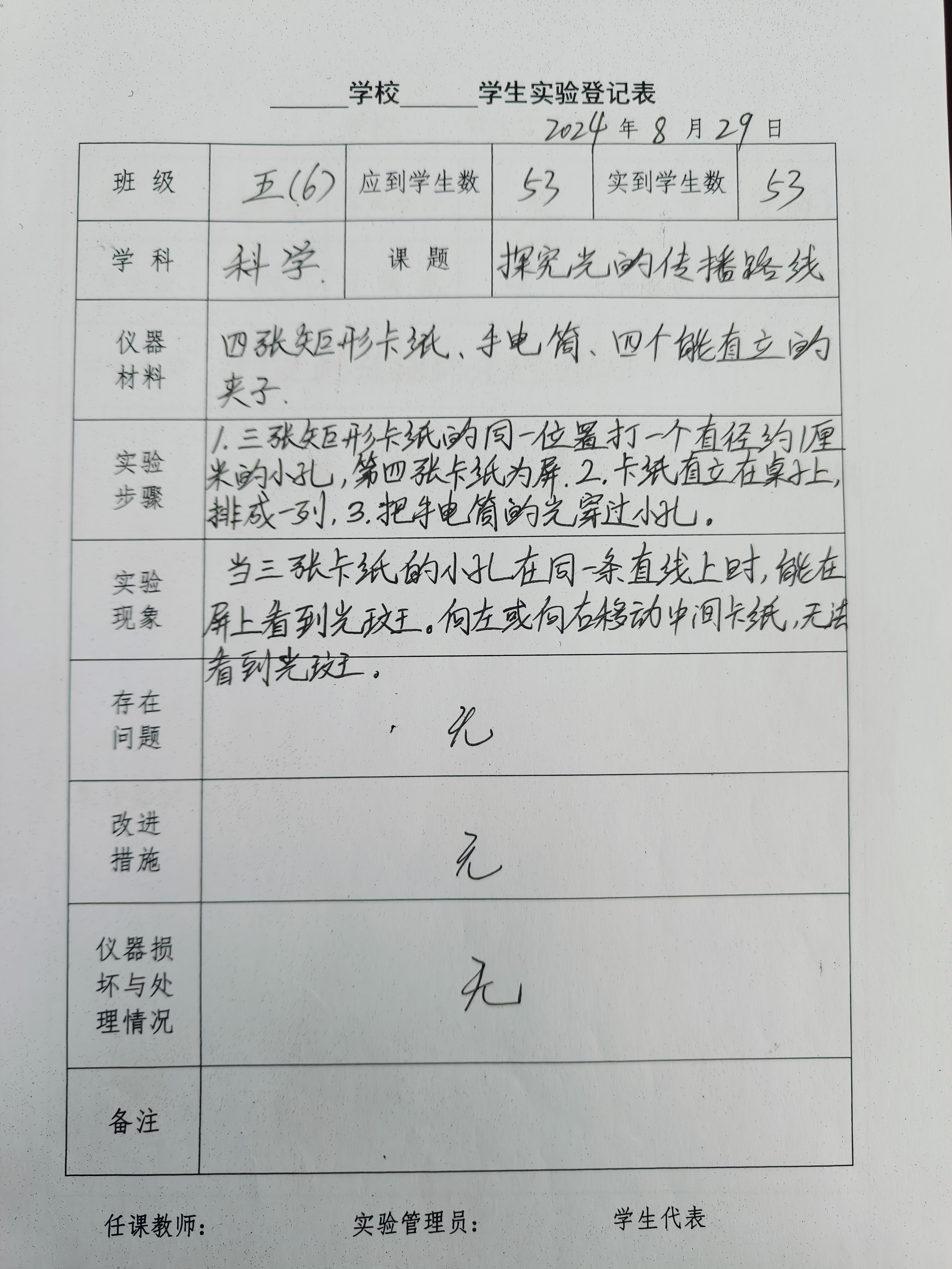 实验登记表