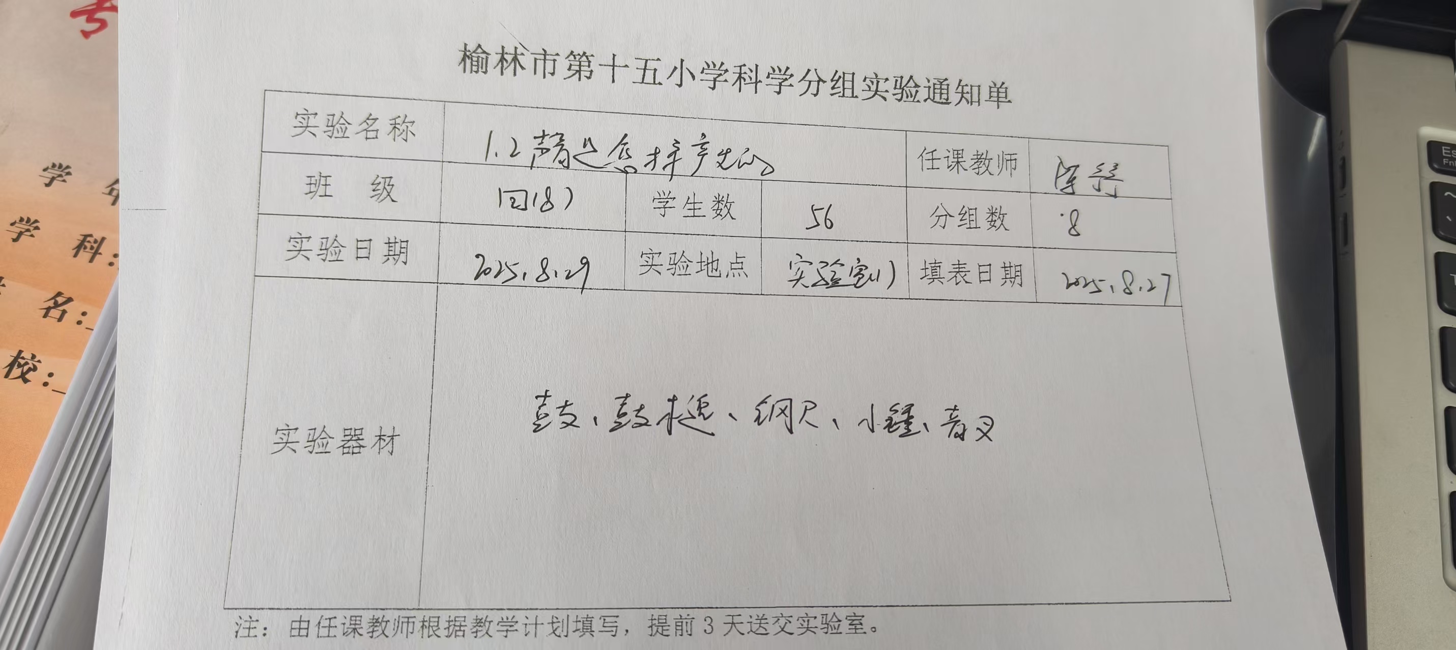 实验登记表