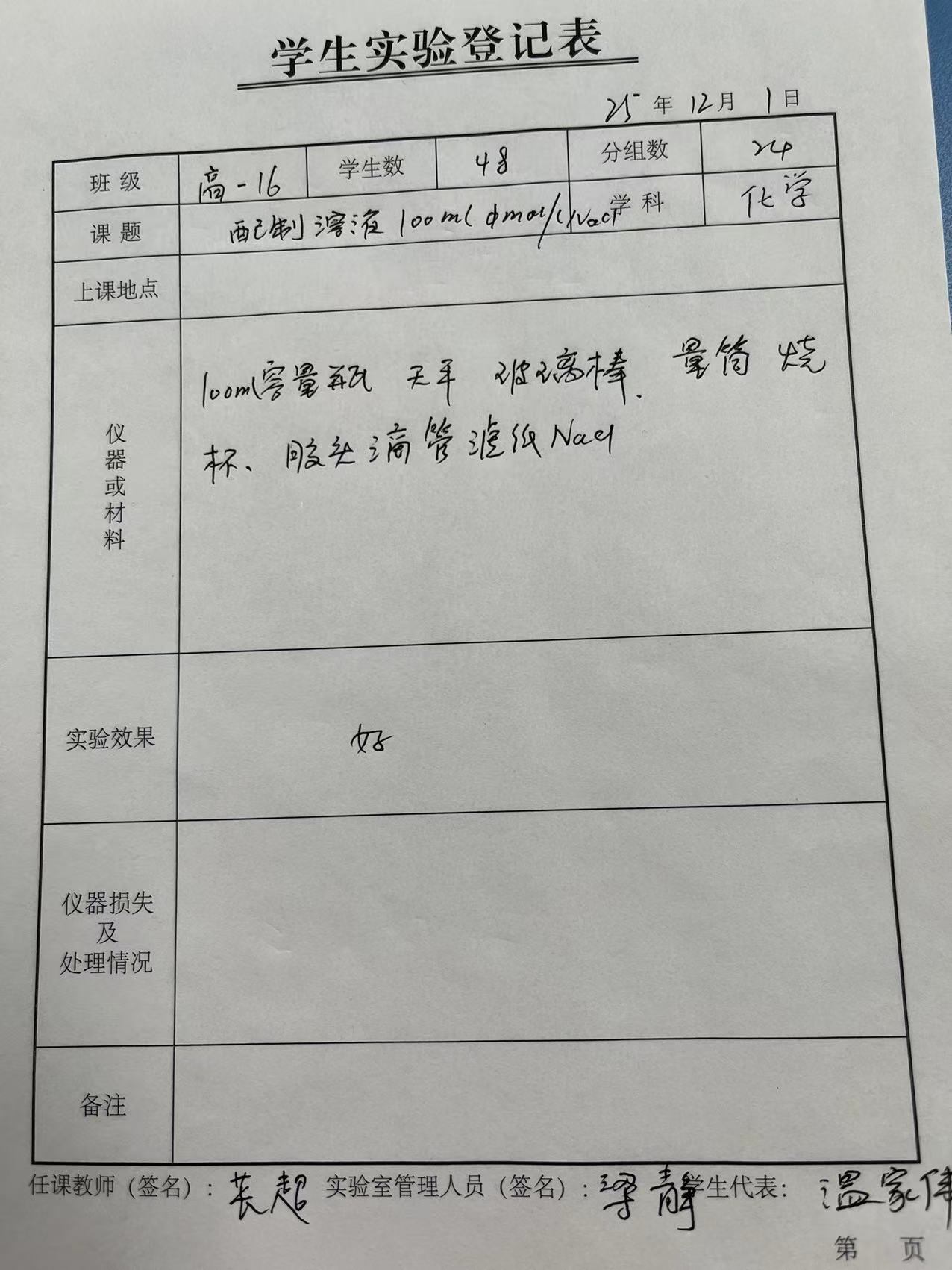 实验登记表