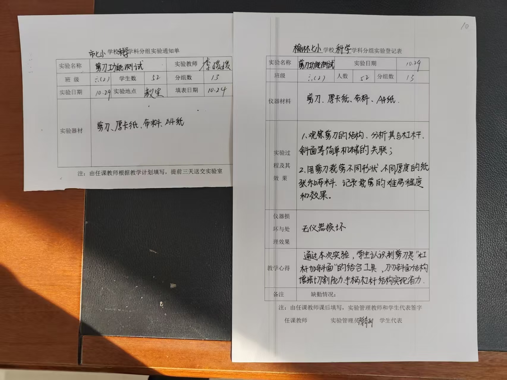实验登记表