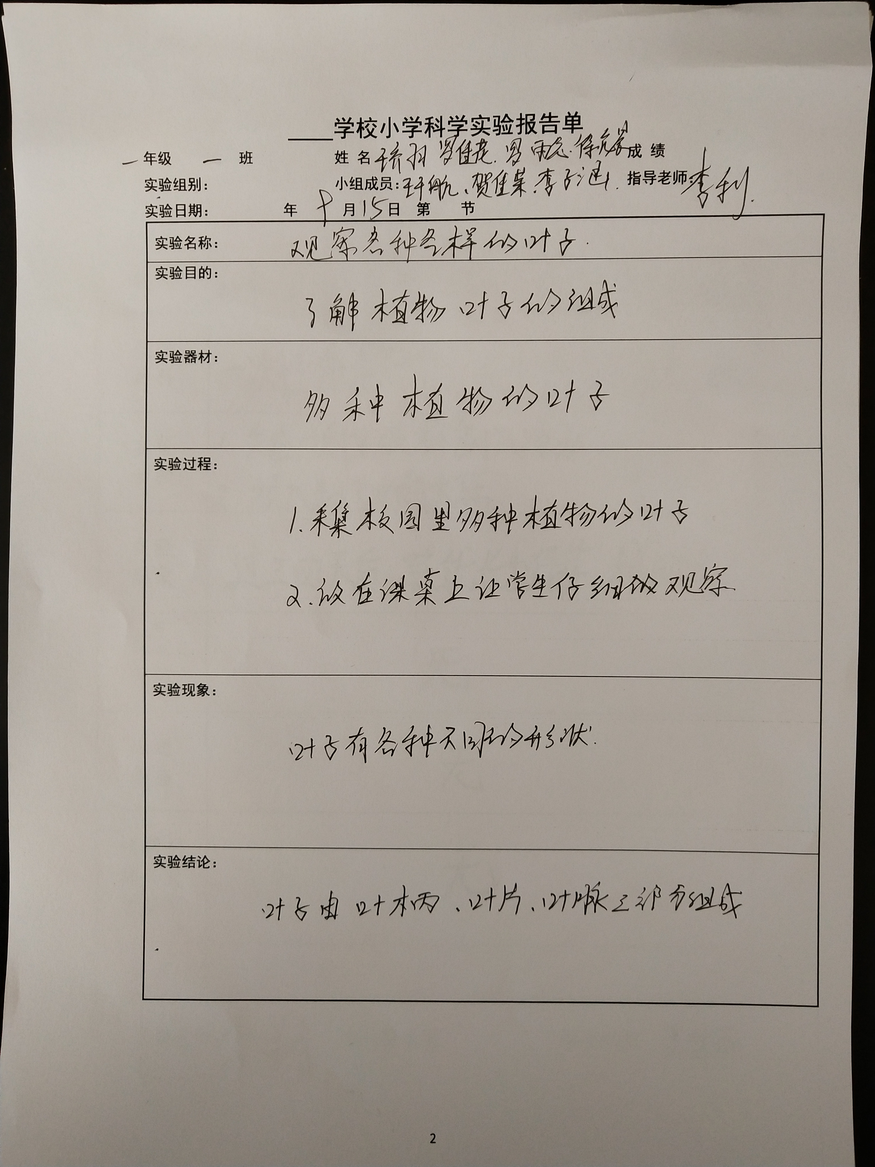 年级科目:一年级科学