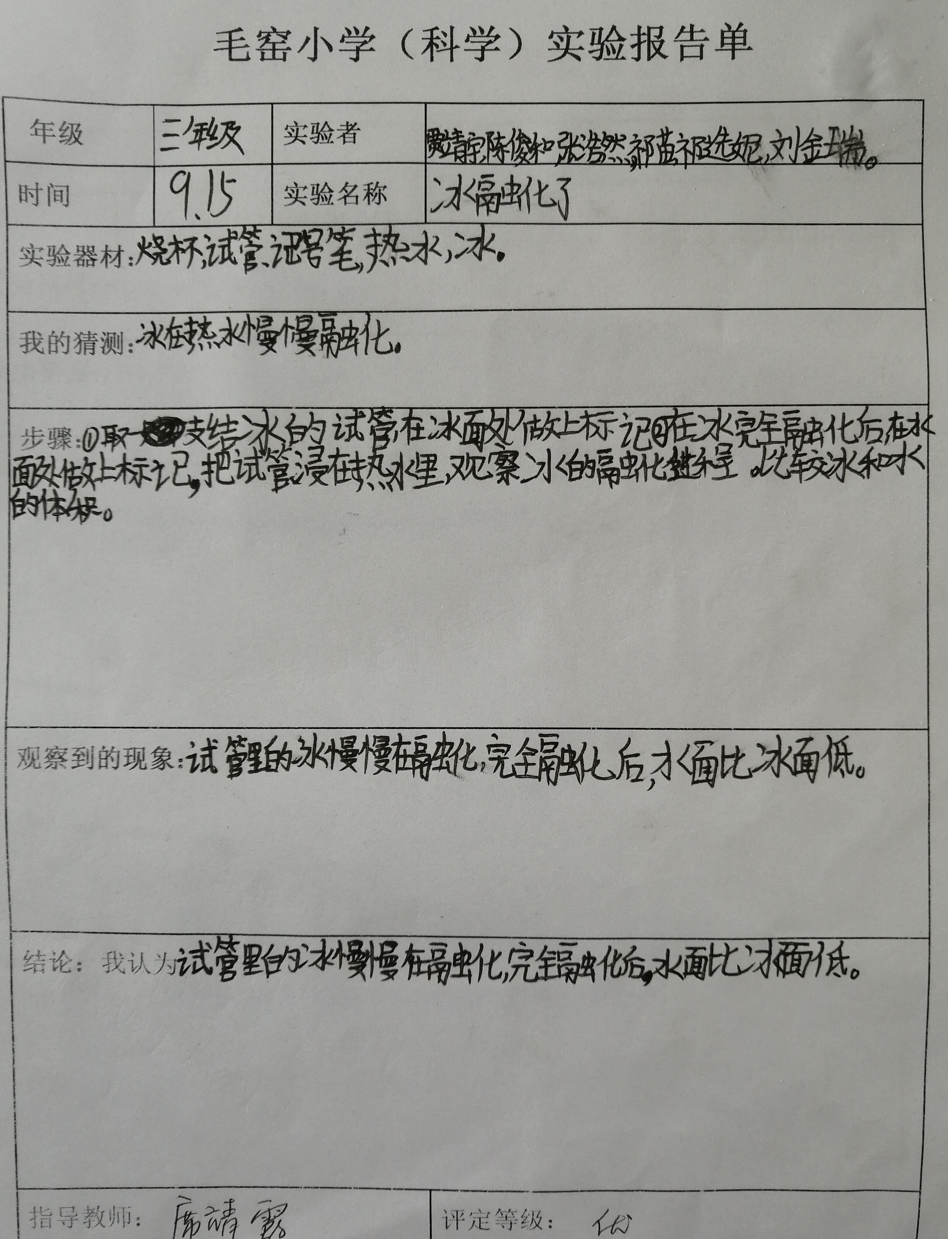 年级科目:三年级科学