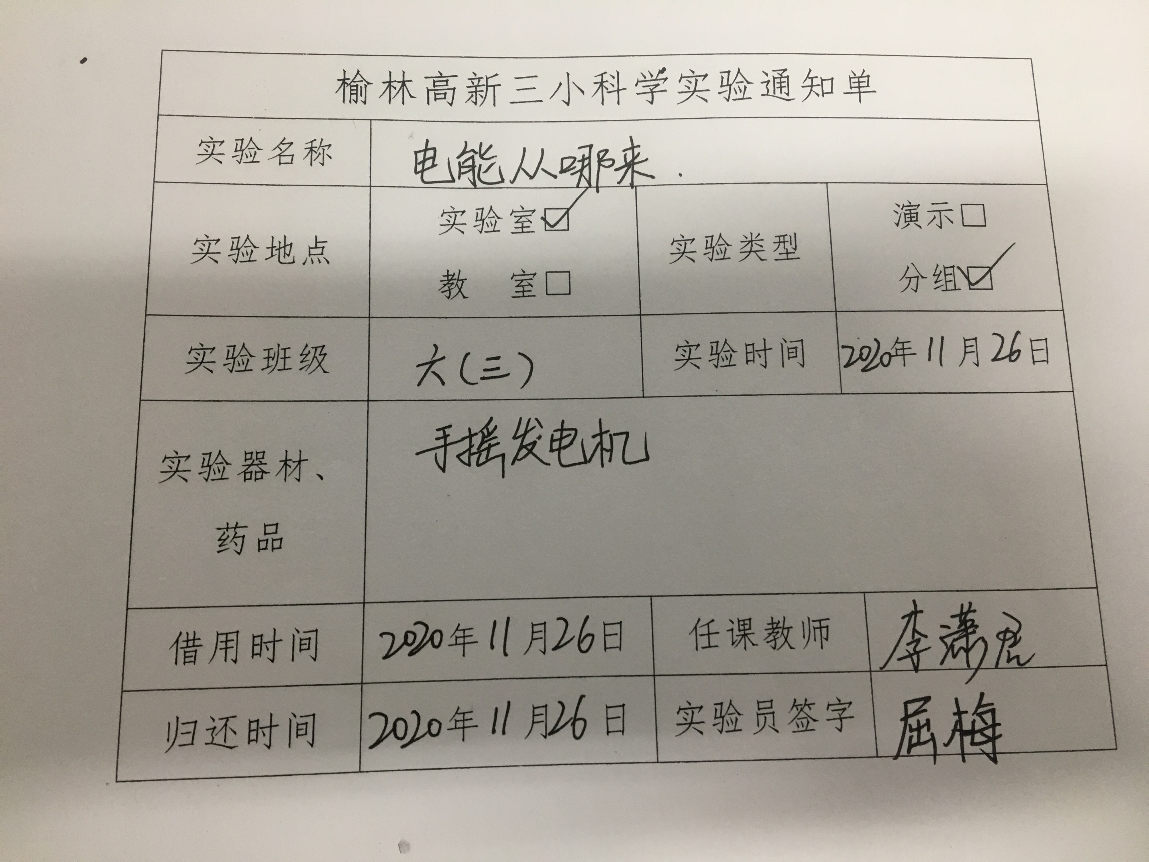 实验登记表