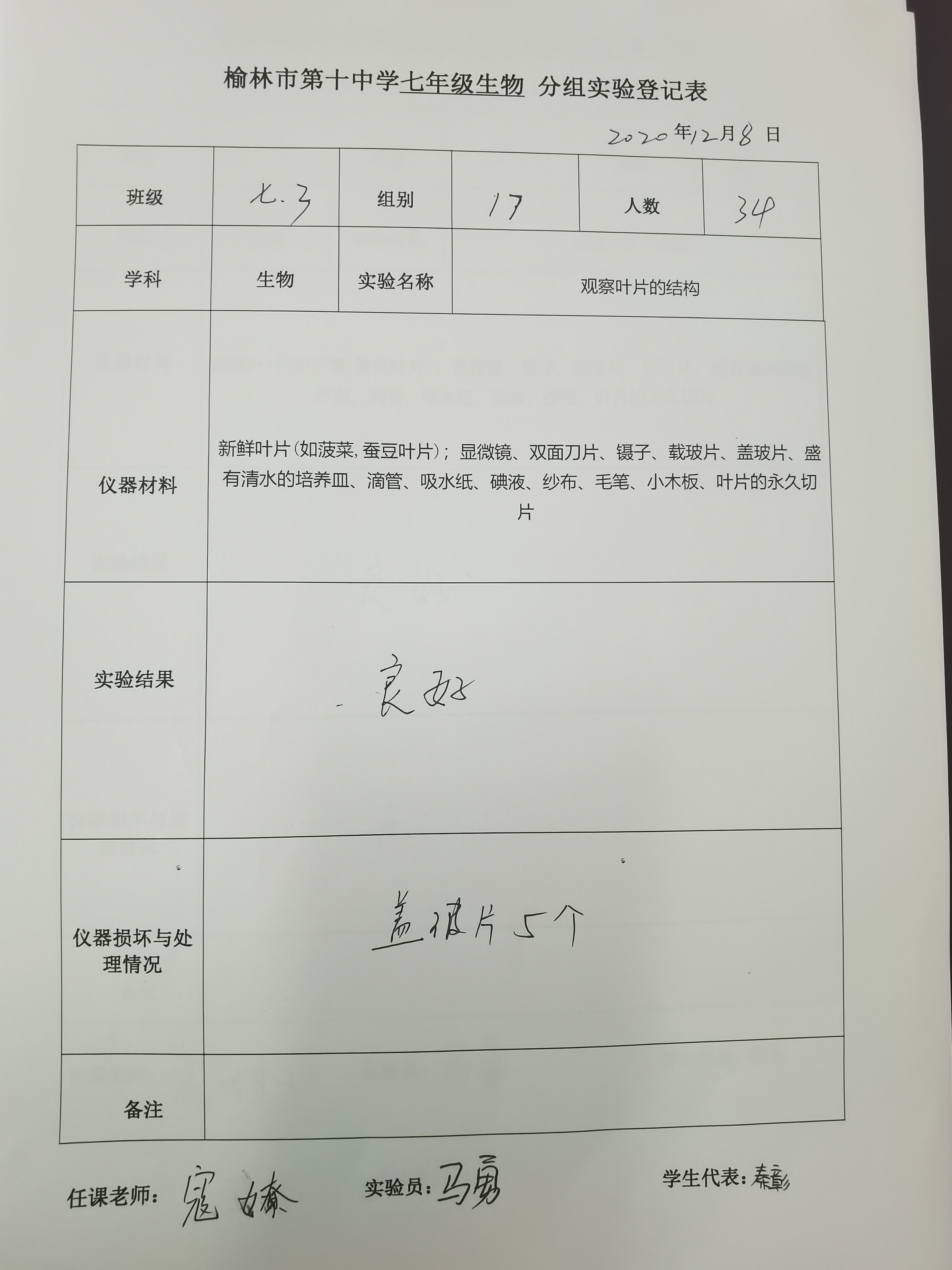 实验登记表