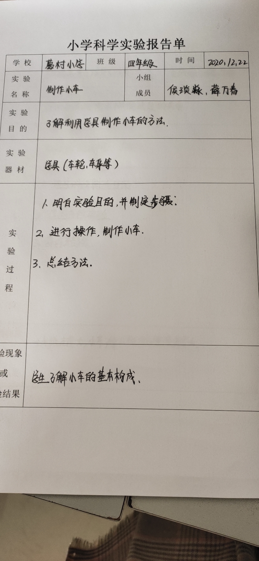 年级科目:四年级科学