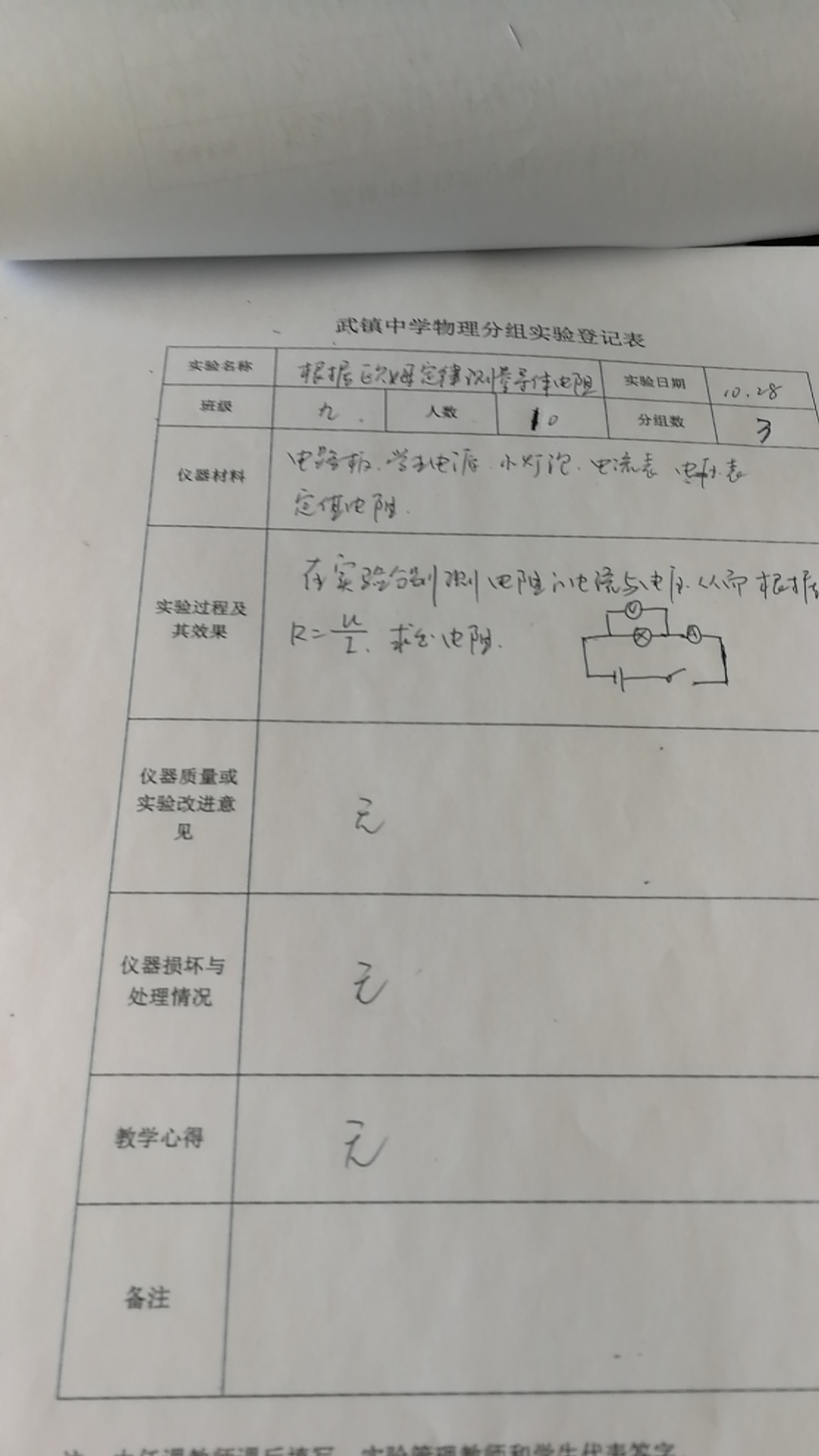 实验登记表