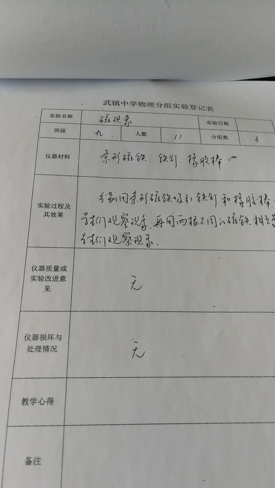 实验登记表