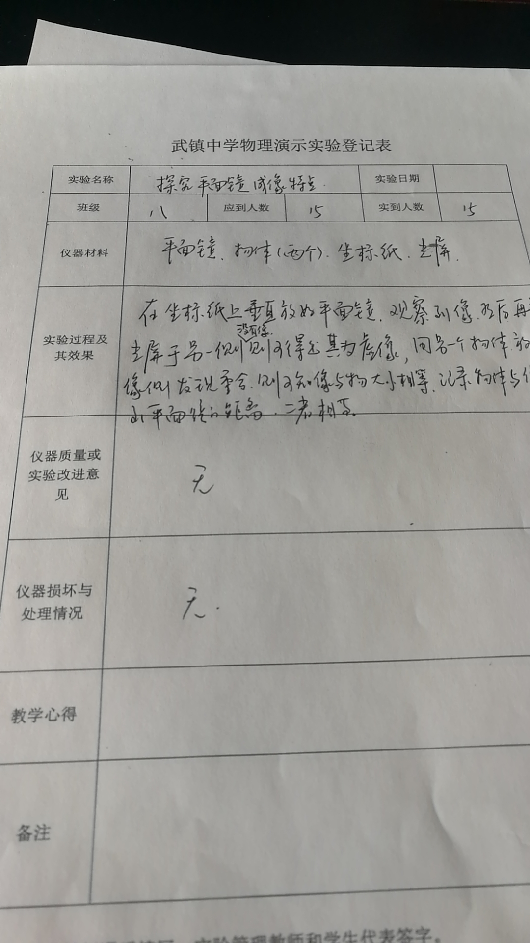 实验登记表