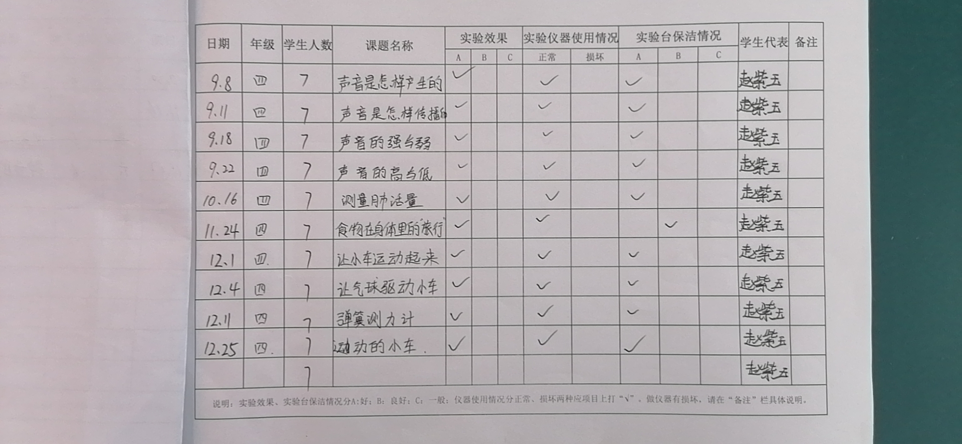 年级科目:四年级科学