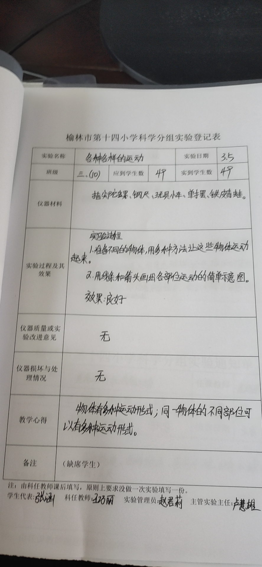 实验登记表