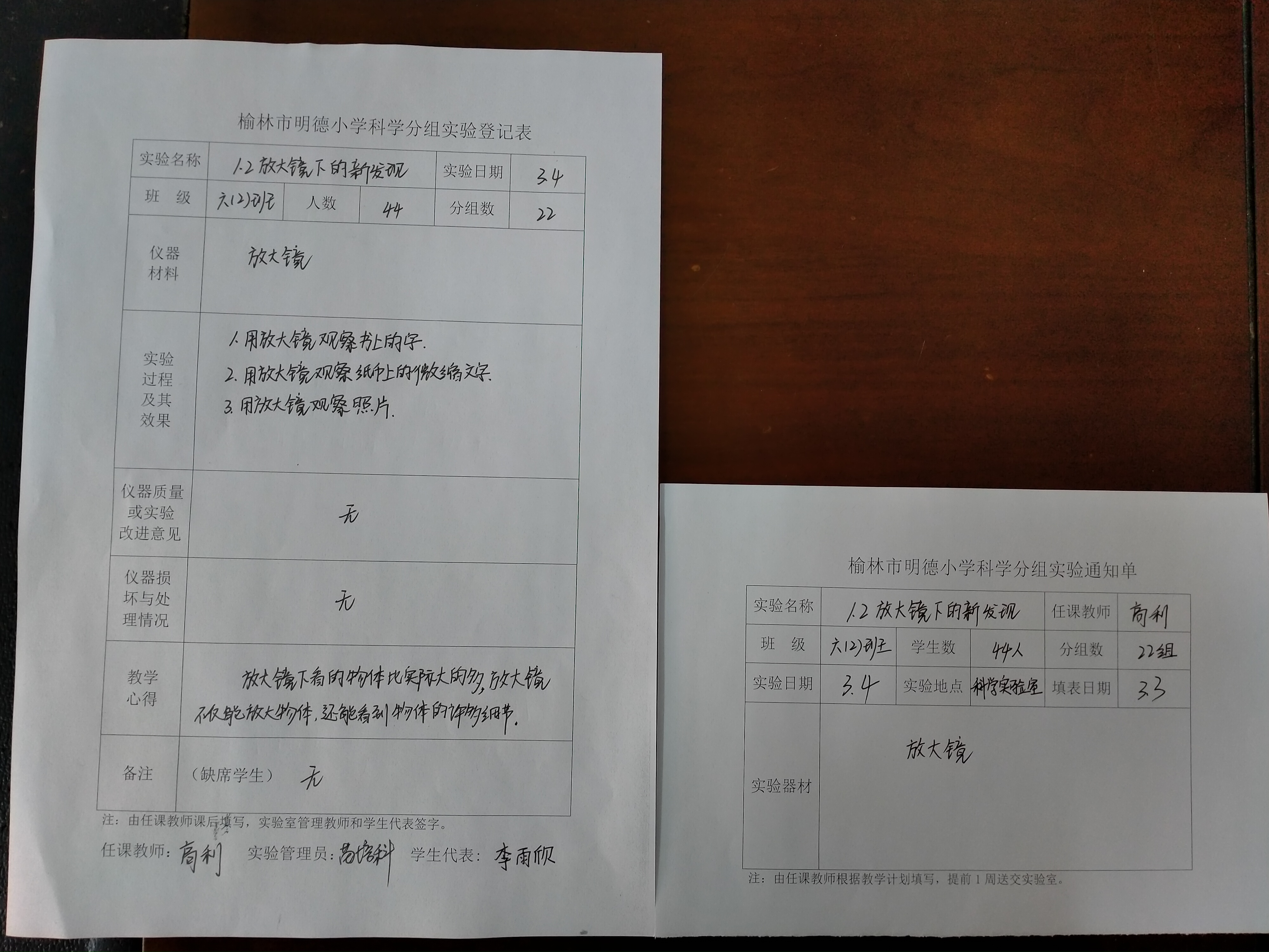 实验登记表