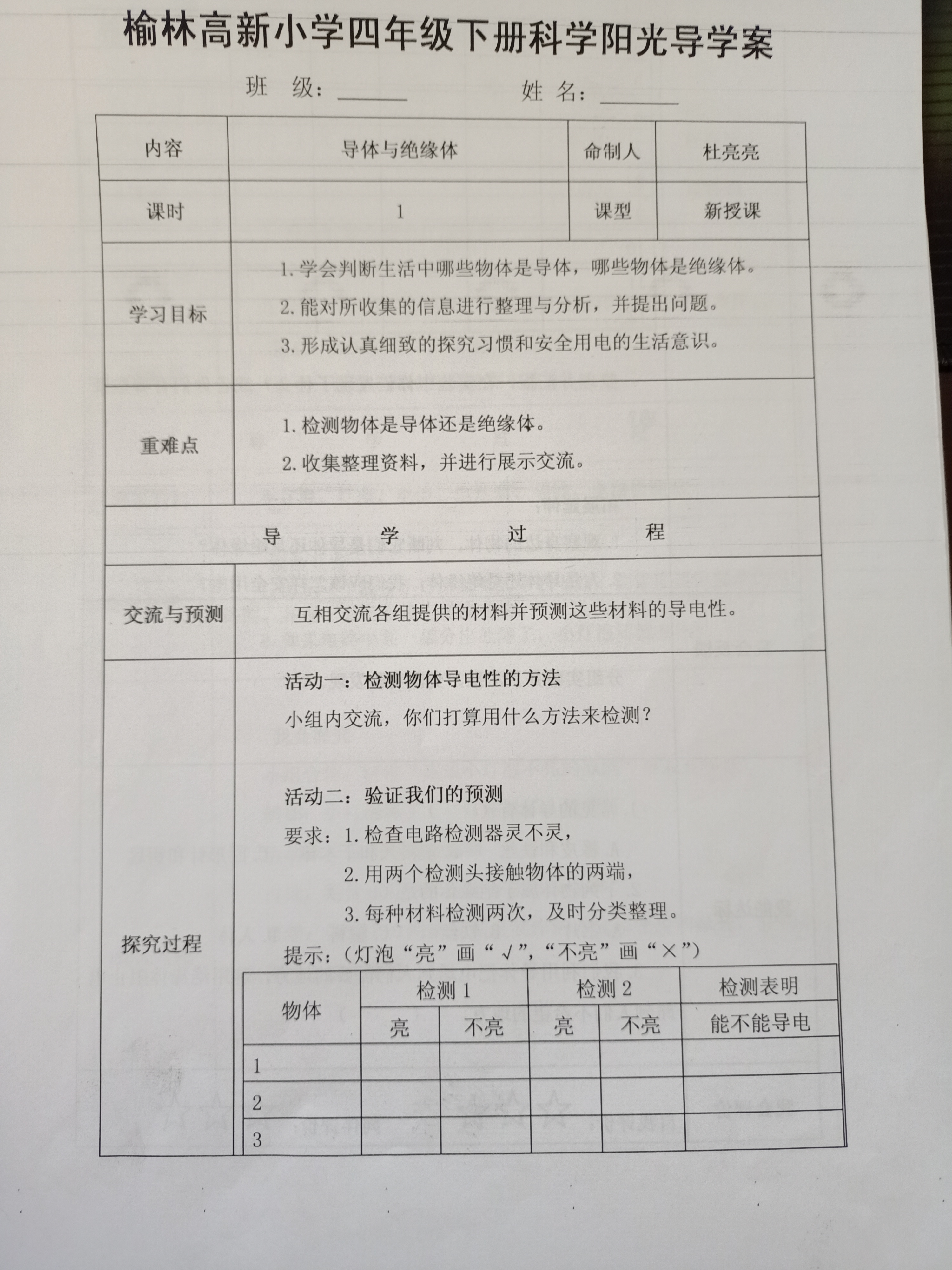 年级科目:四年级科学