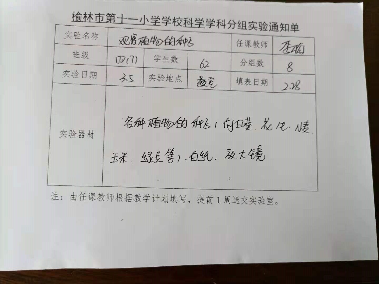 实验登记表