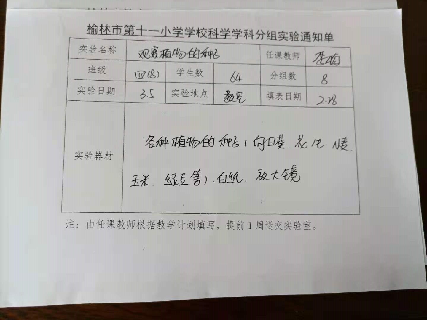 实验登记表