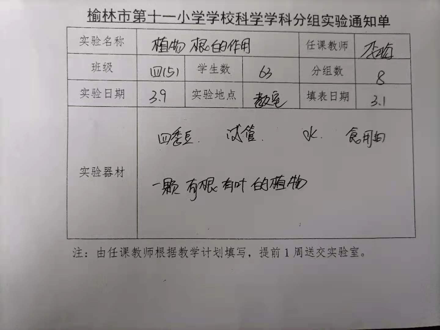 实验登记表