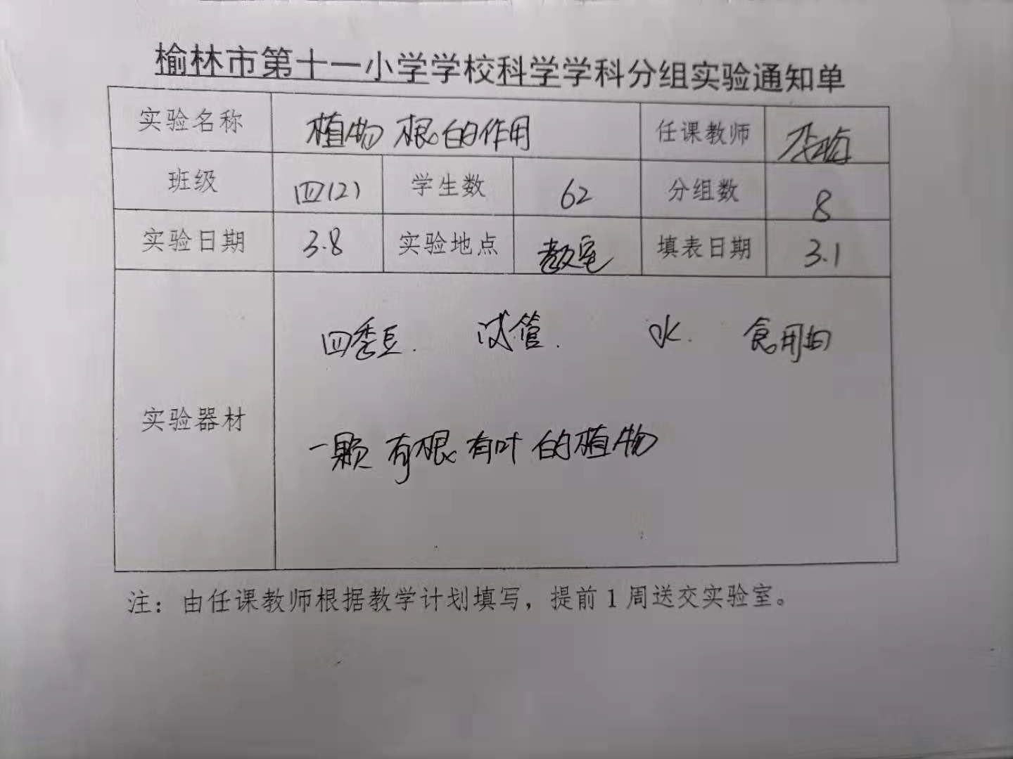 实验登记表