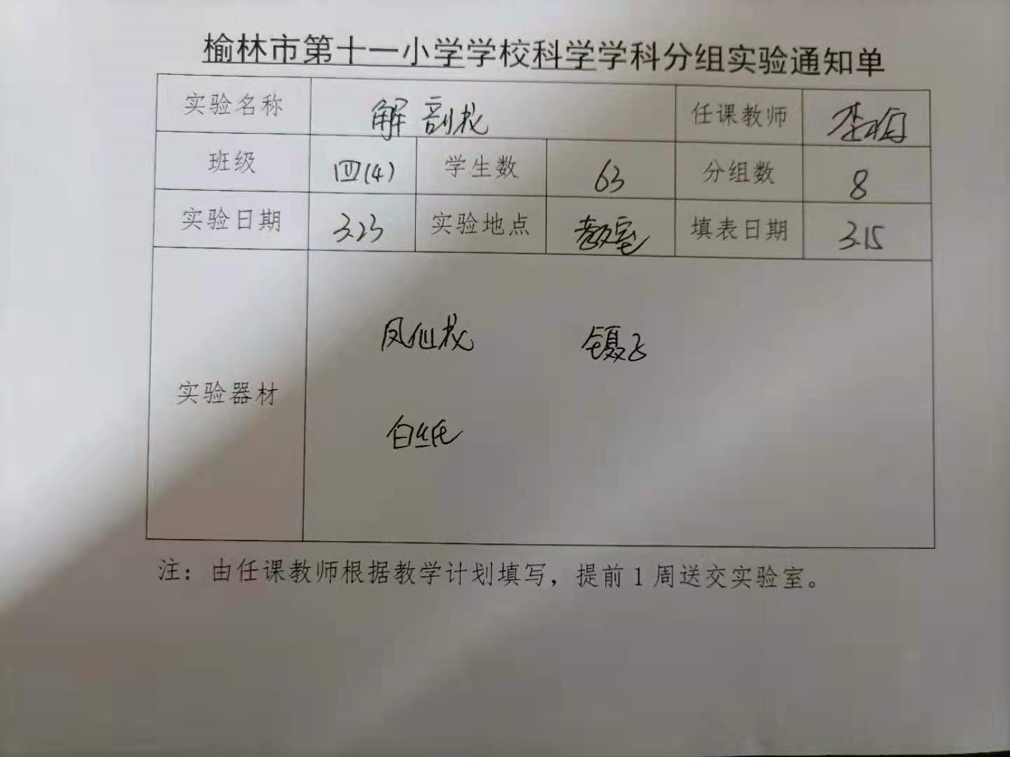 实验登记表