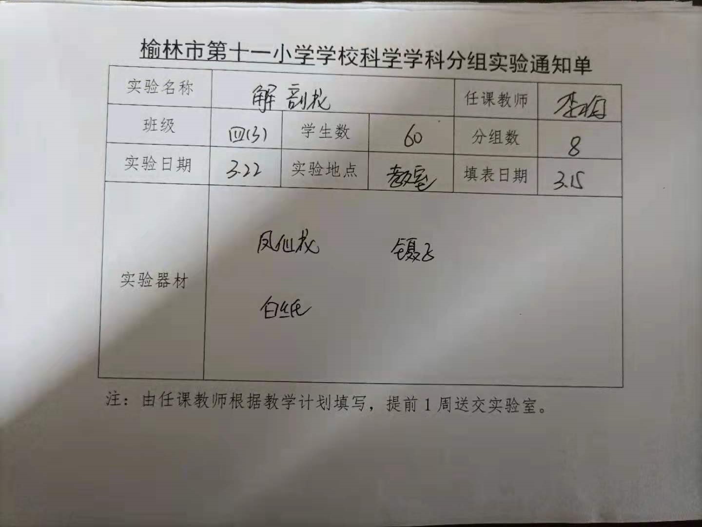 实验登记表