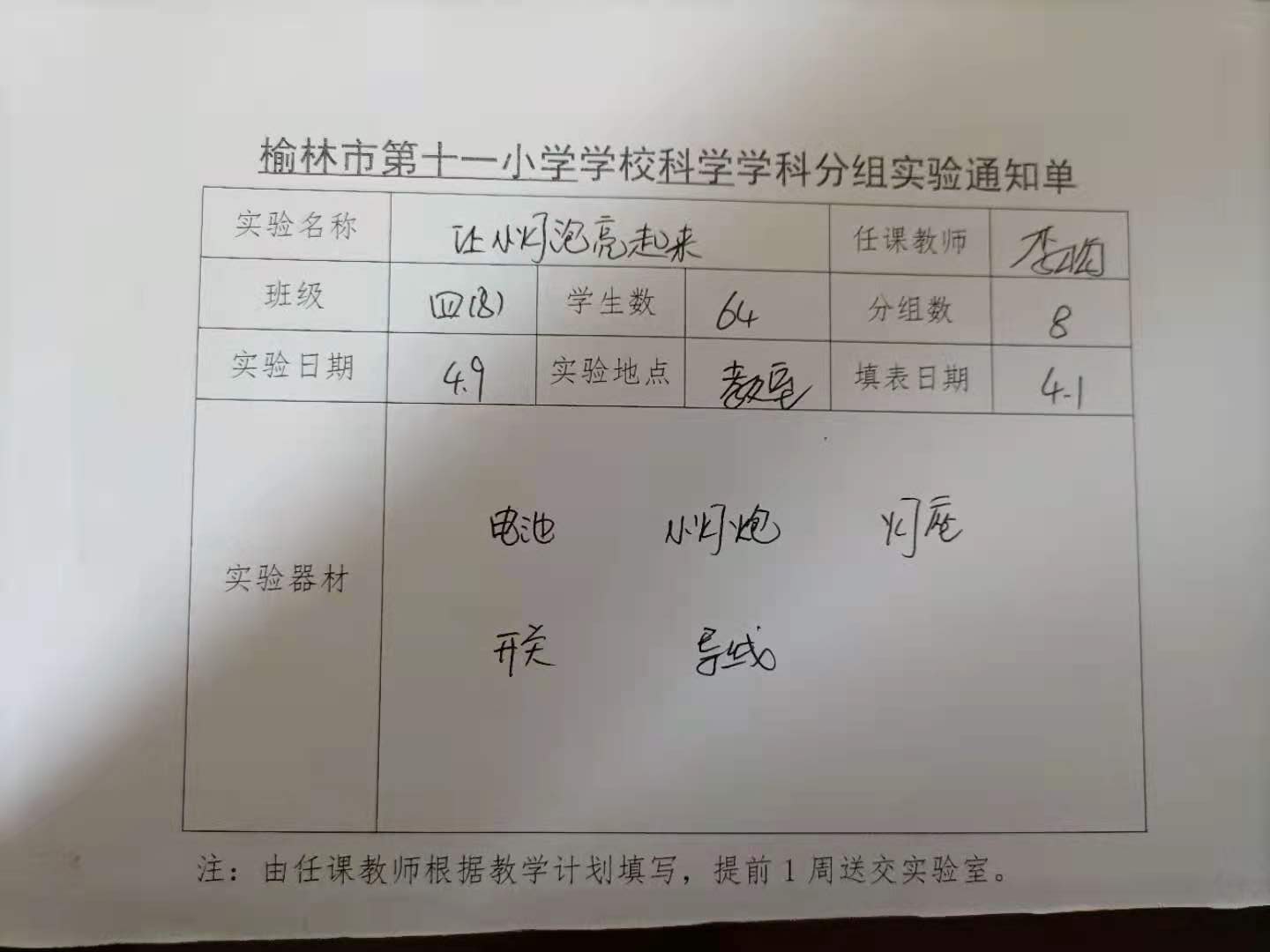 实验登记表