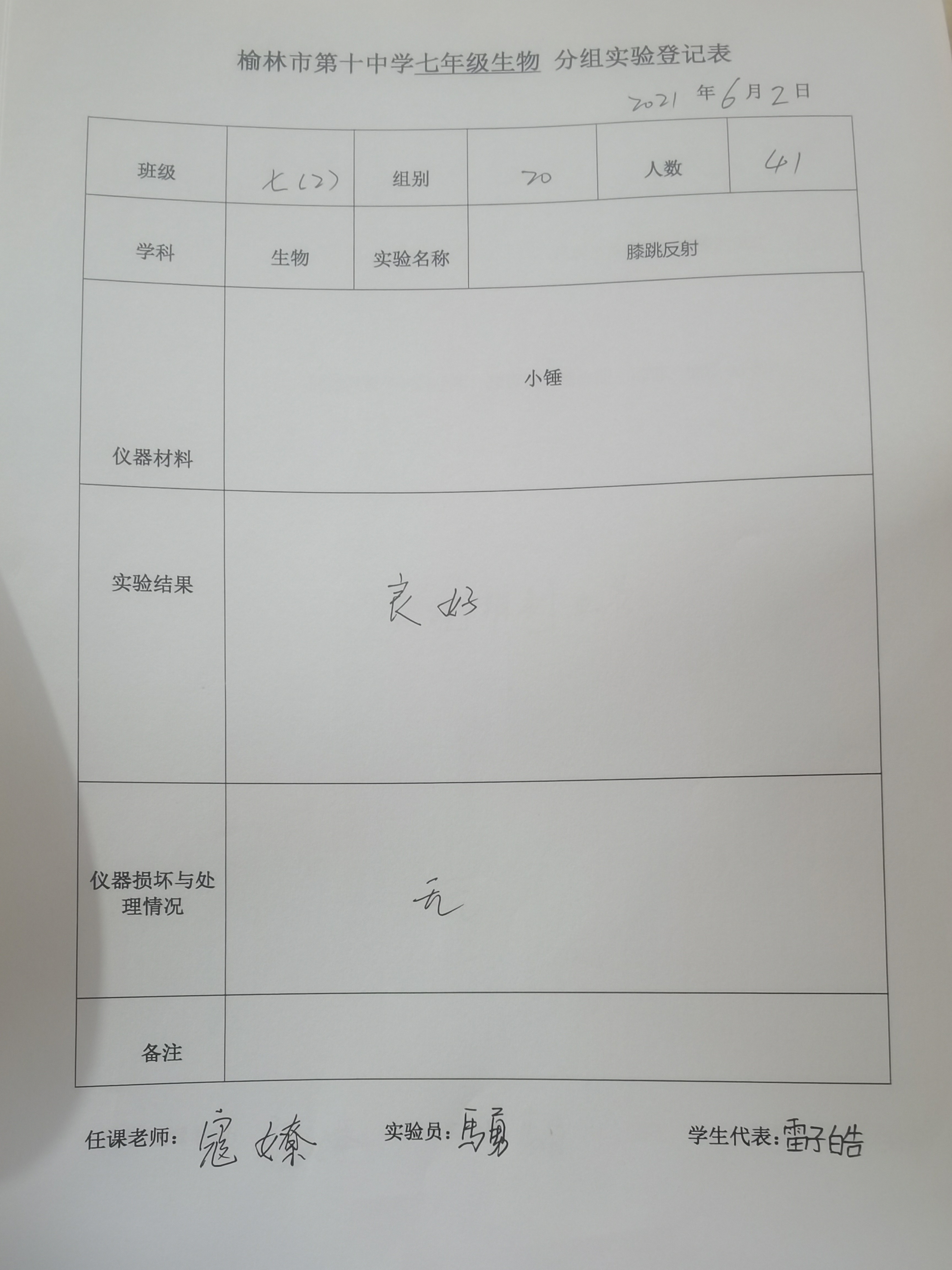 实验登记表