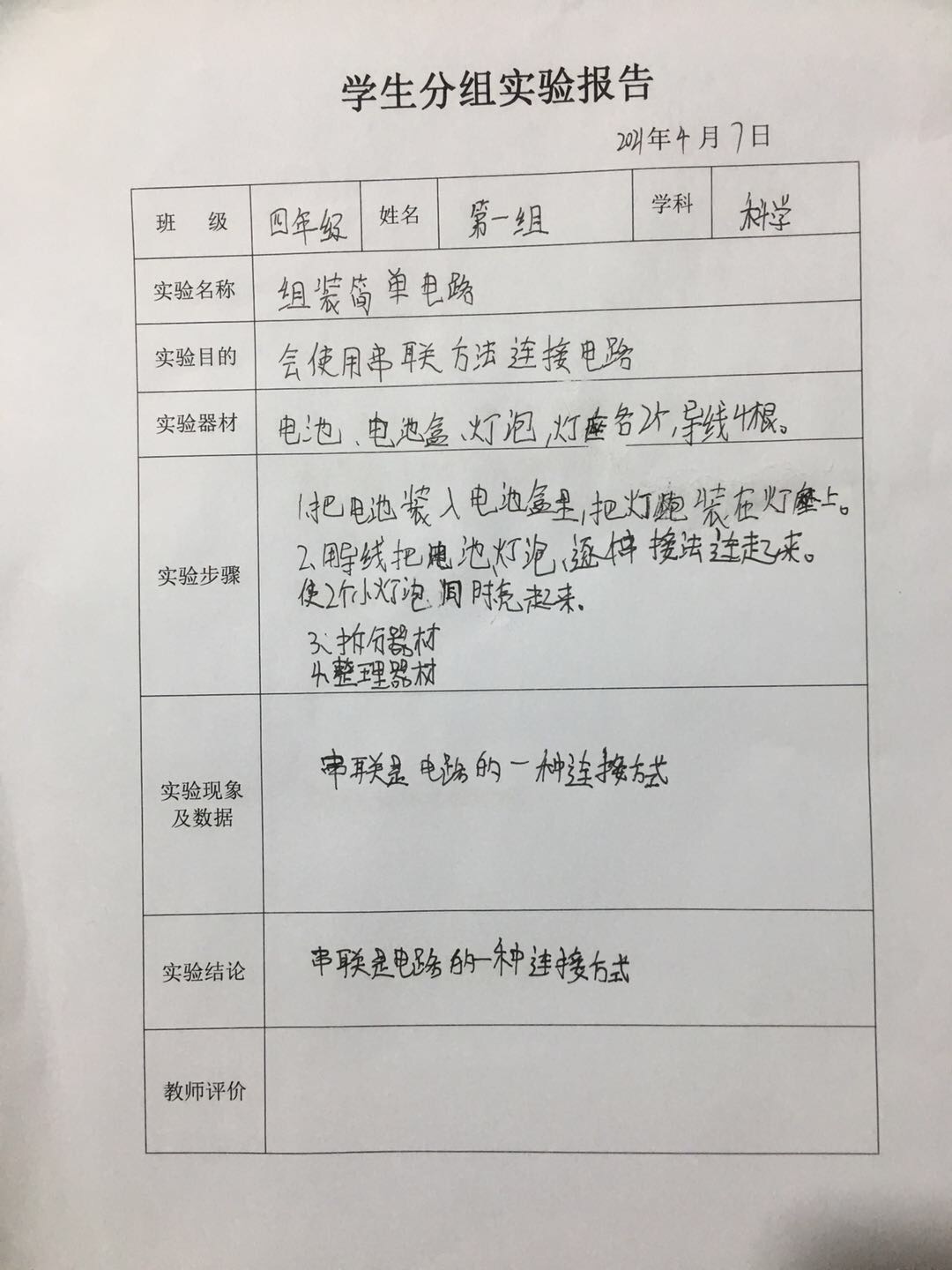 年级科目:四年级科学