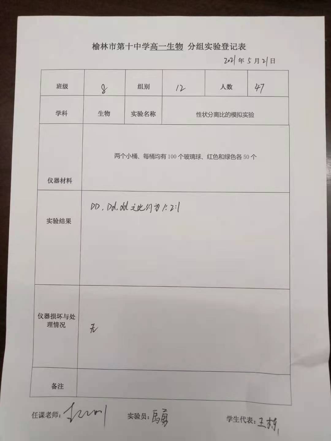 实验登记表